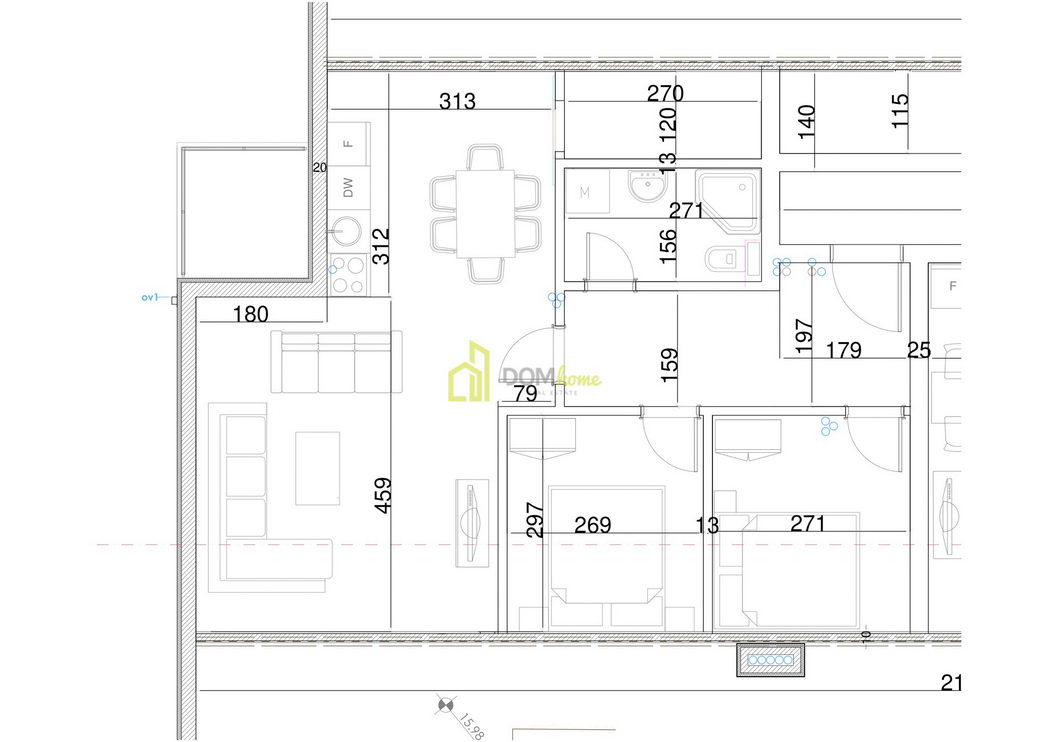 Structure of the apartment: entrance hall, living room, kitchen, two bedrooms, bathroom and storage room.