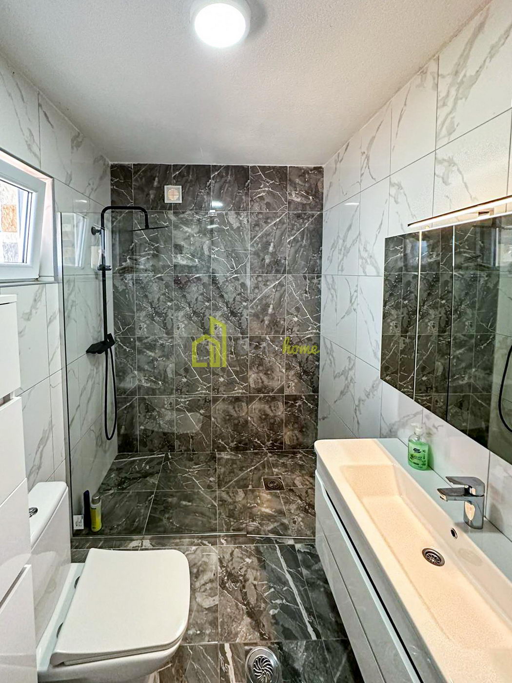 It consists of a ground floor, a first floor and a roof terrace.