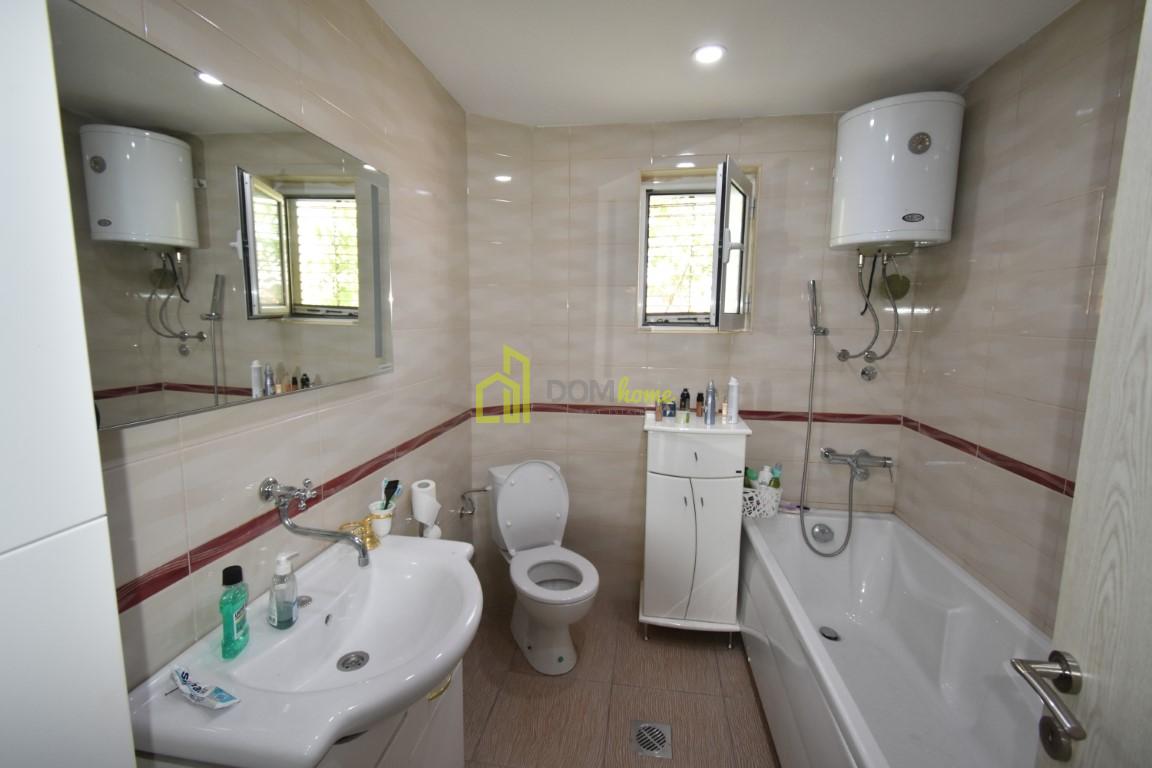 U prizemlju je trosoban stan, posjeduje jedno kupatilo i klimatizovan je, a na spratu je dvosoban stan koji je kompletno renoviran, lux namješten, klimatizovan i posjeduje jedno kupatilo.