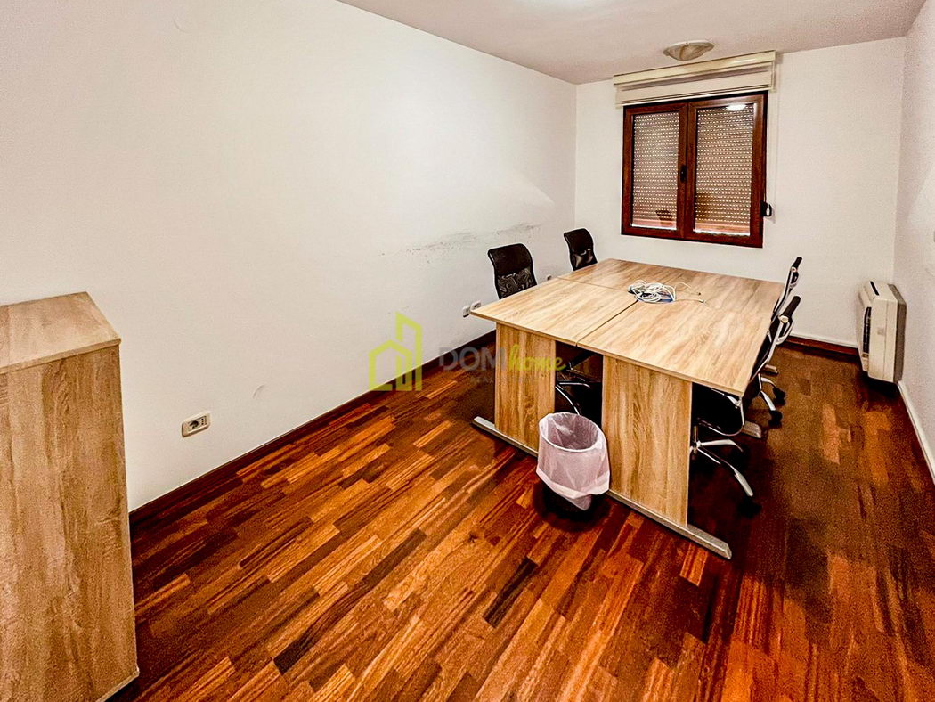 Sastoji se od ulaznog hodnika, tri prostorije, arhive, kuhinje, kupatila, toaleta i terase.