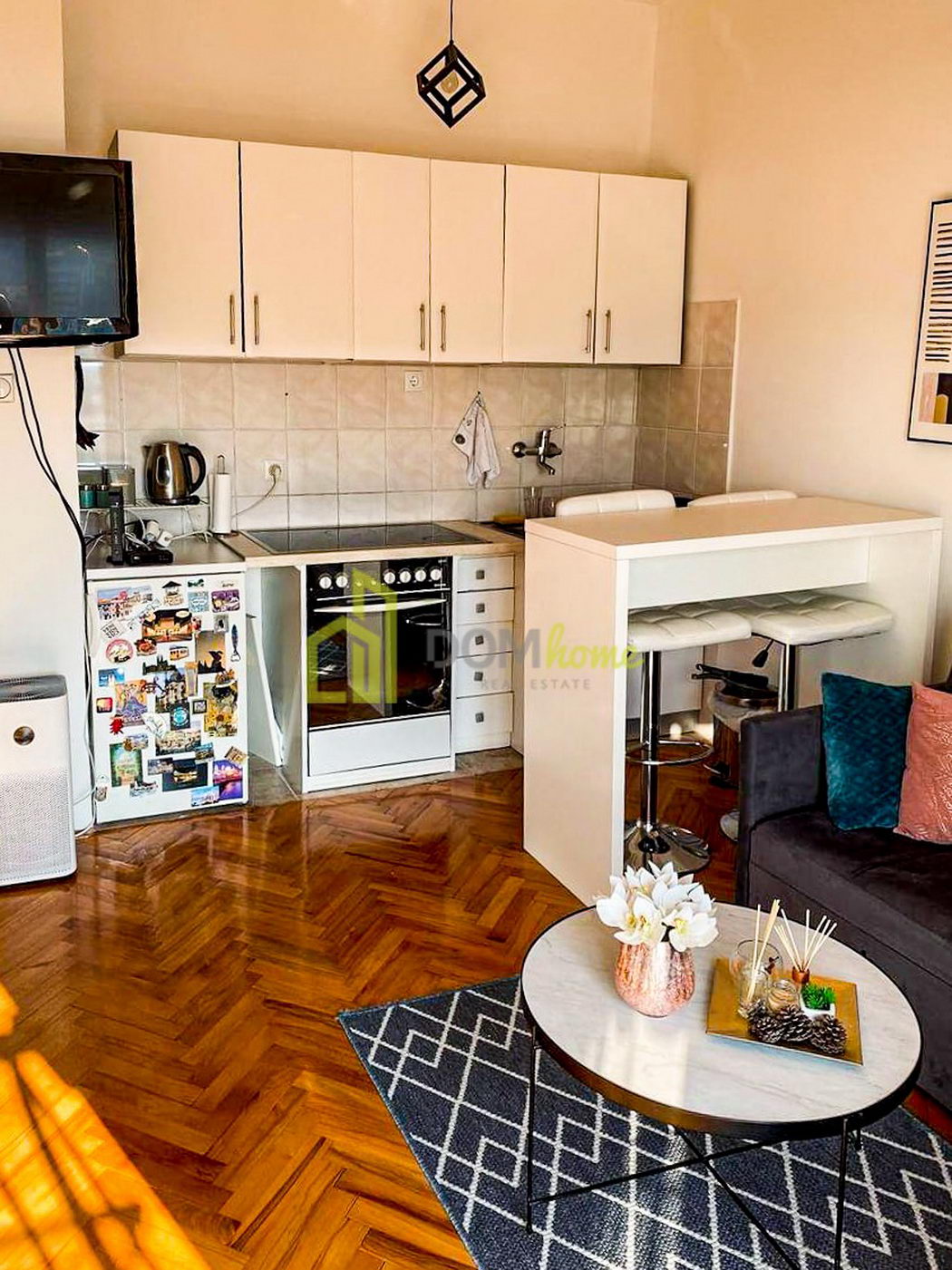 Struktura: Ulazni hodnik, dnevni boravak, kuhinja, trpezarija, kupatilo i francuski balkon.