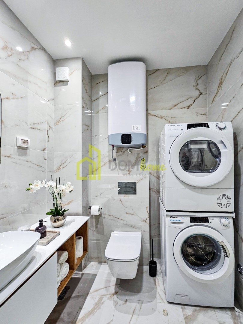 🌟 Stan je opremljen modernim, vrhunskim tehničkim uređajima i ugradnim elementima najviše kvalitete, uključujući LED rasvjetu, kvalitetne sanitarije, i prvoklasnu keramiku i parket.