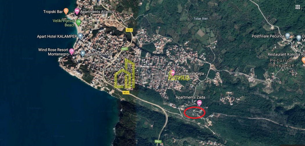 250m od mosta Meret. Površina 6000m2. Mogucnost dijeljenja na manje parcele. 50e po m2.