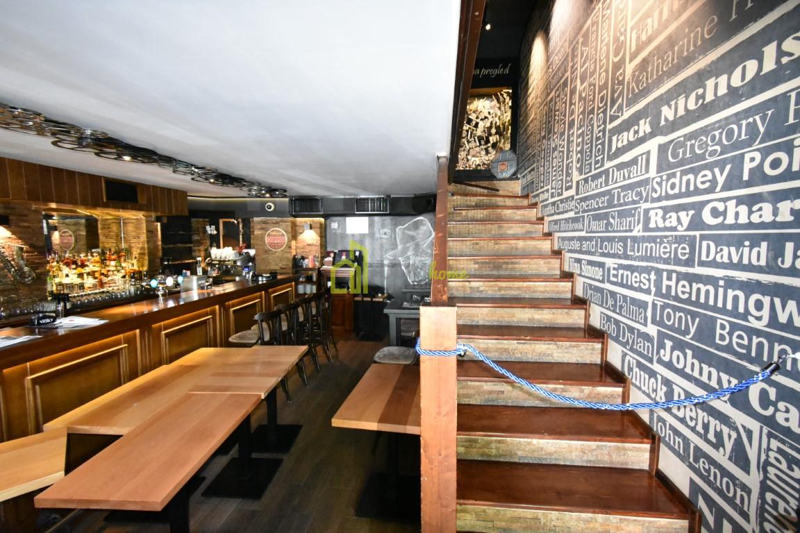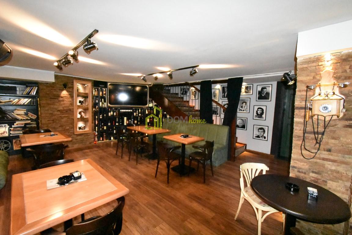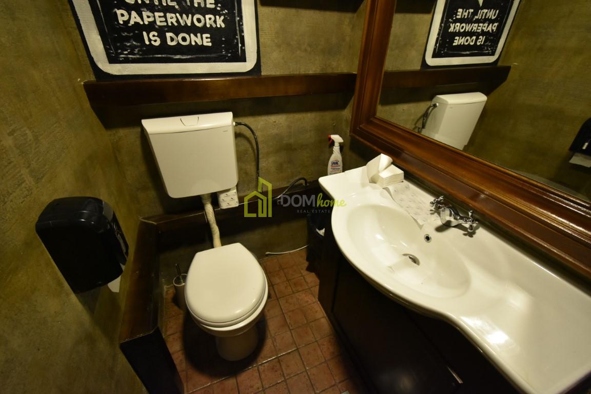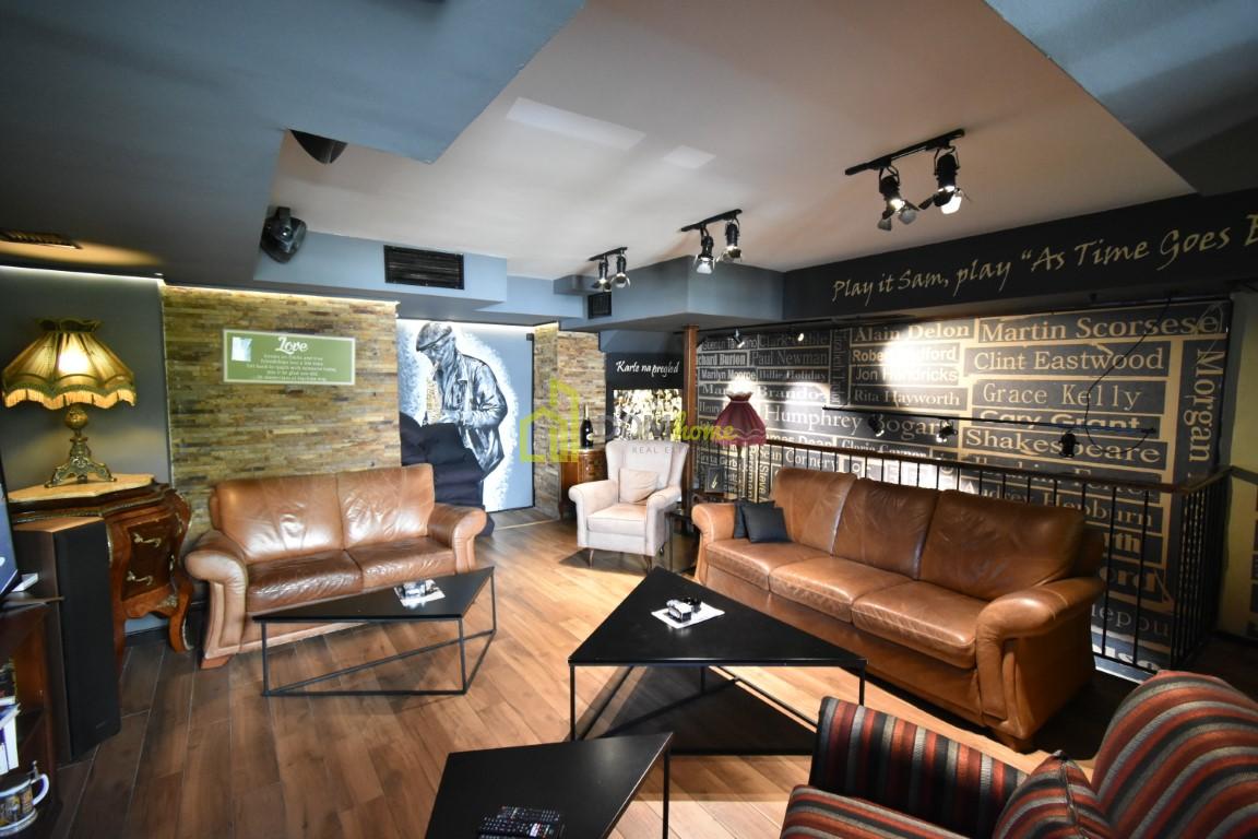 Na tri nivoa je, kompletno opremljen za ugostiteljstvo, posjeduje dva toaleta, ostavu površine 15m2, baštu površine 35m2 za koju se plaća 20€ mjesečno etažnim vlasnicima.