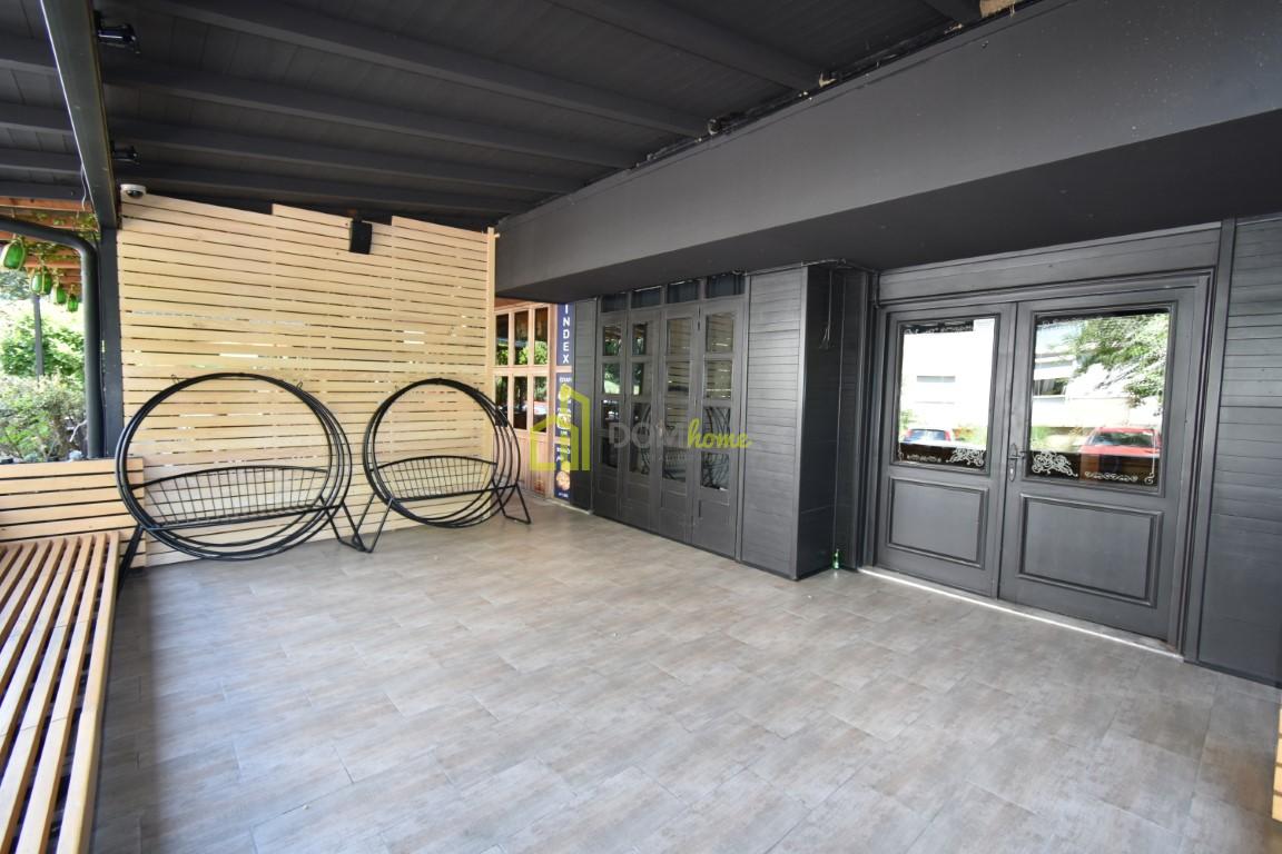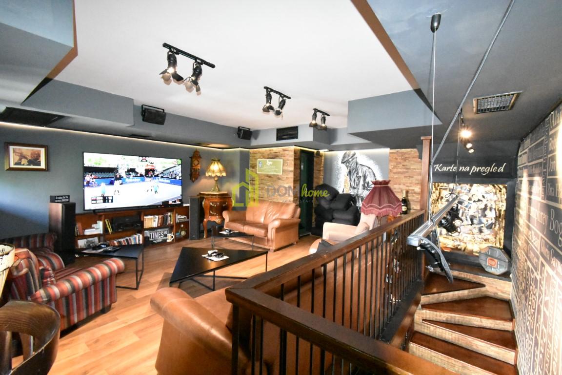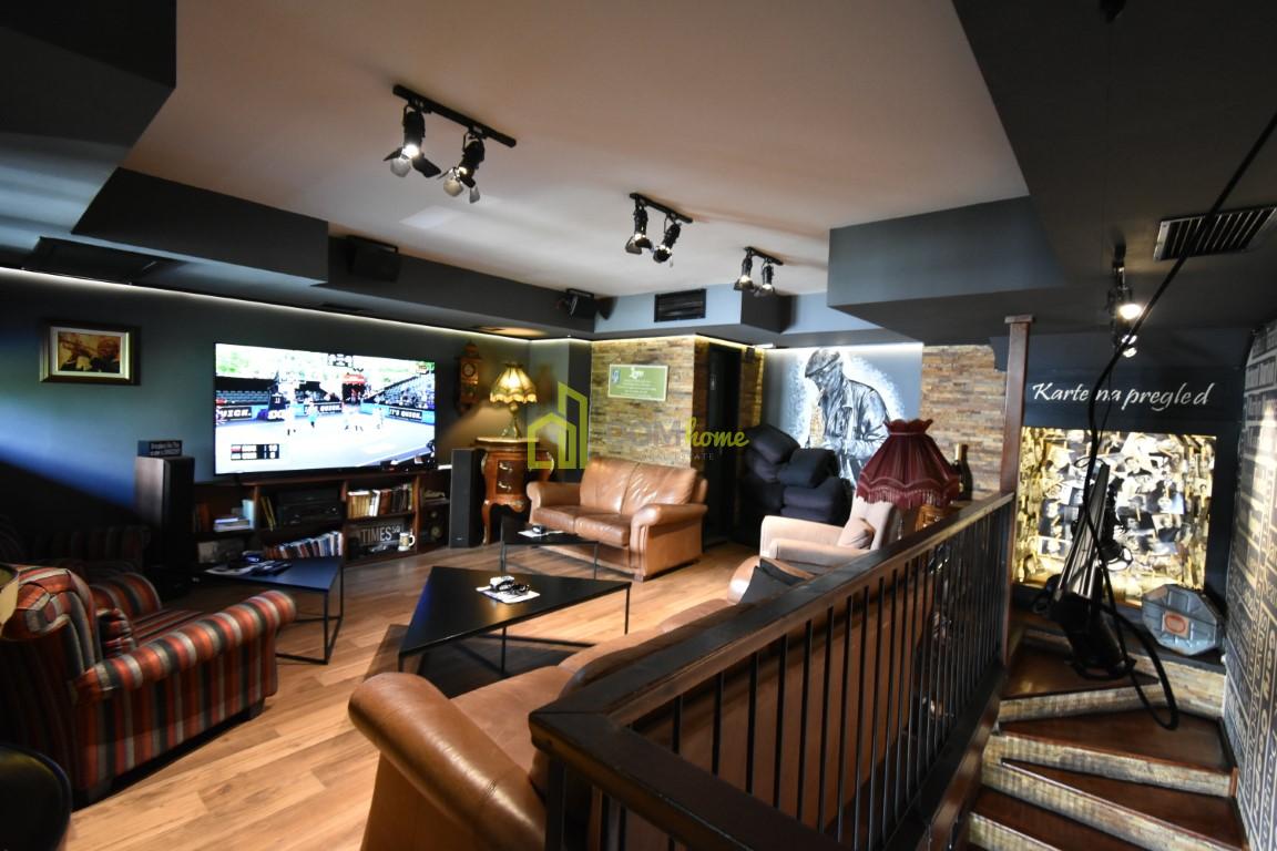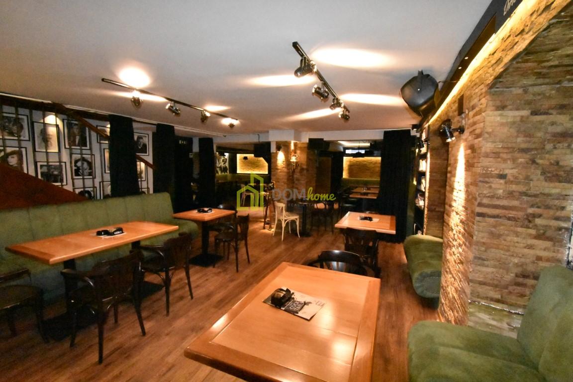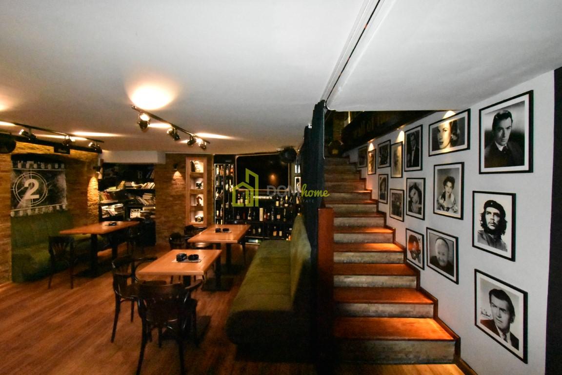 Na tri nivoa je, kompletno opremljen za ugostiteljstvo, posjeduje dva toaleta, ostavu površine 15m2, baštu površine 35m2 za koju se plaća 20€ mjesečno etažnim vlasnicima.