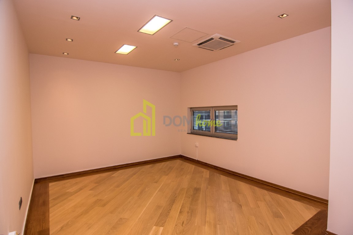 Sređen je i izdaje se bez kancelarijskog namještaja, klimatizovan je i ima ugrađen multisplit sistem (grijanje/hlađenje), posjeduje toalet i kupatilo i rezervisano jedno parking mjesto.
