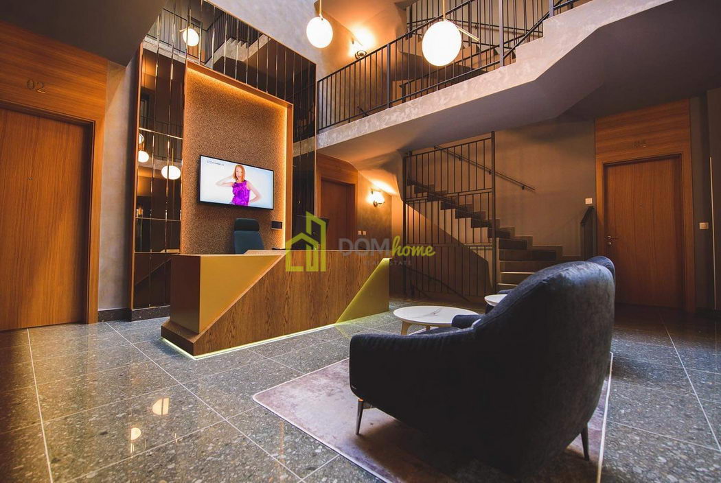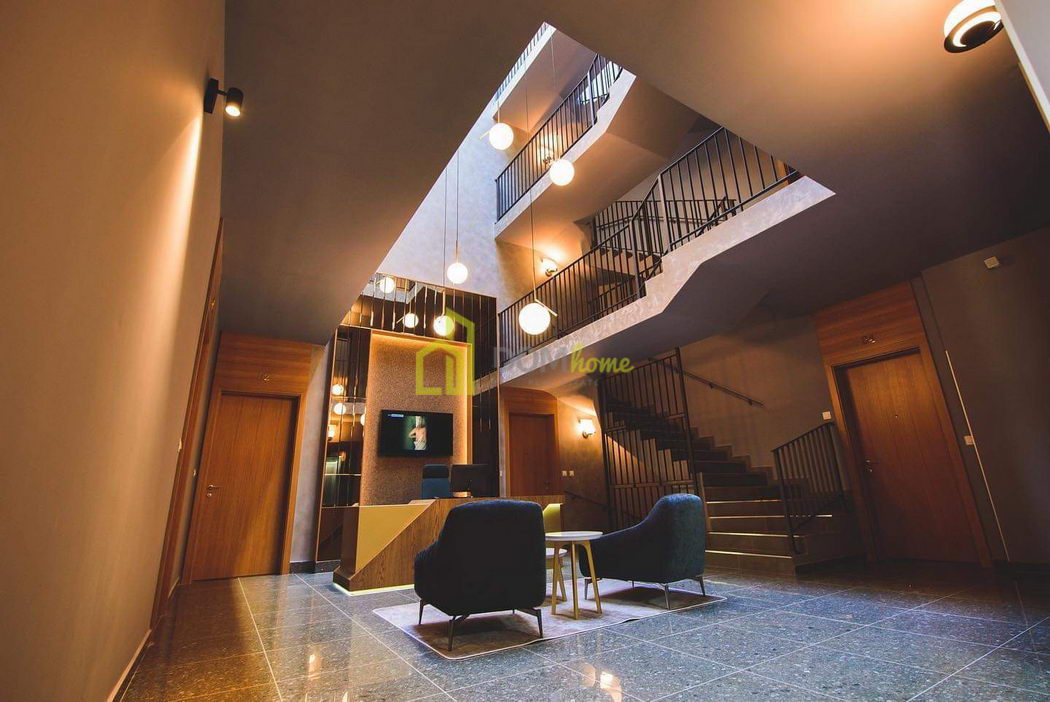 Zgrada posjeduje privatno dvorište pod video nadzorom i sa kontrolom ulaza kapije, garaže i ulaznih vrata u obekat, video interfon, recepciju na usluzi stanarima, lift, free wi-fi u zajedničkim zonama, zajedničke sadržaje za druženje i odmor, centralni atrijum sa tv-om.