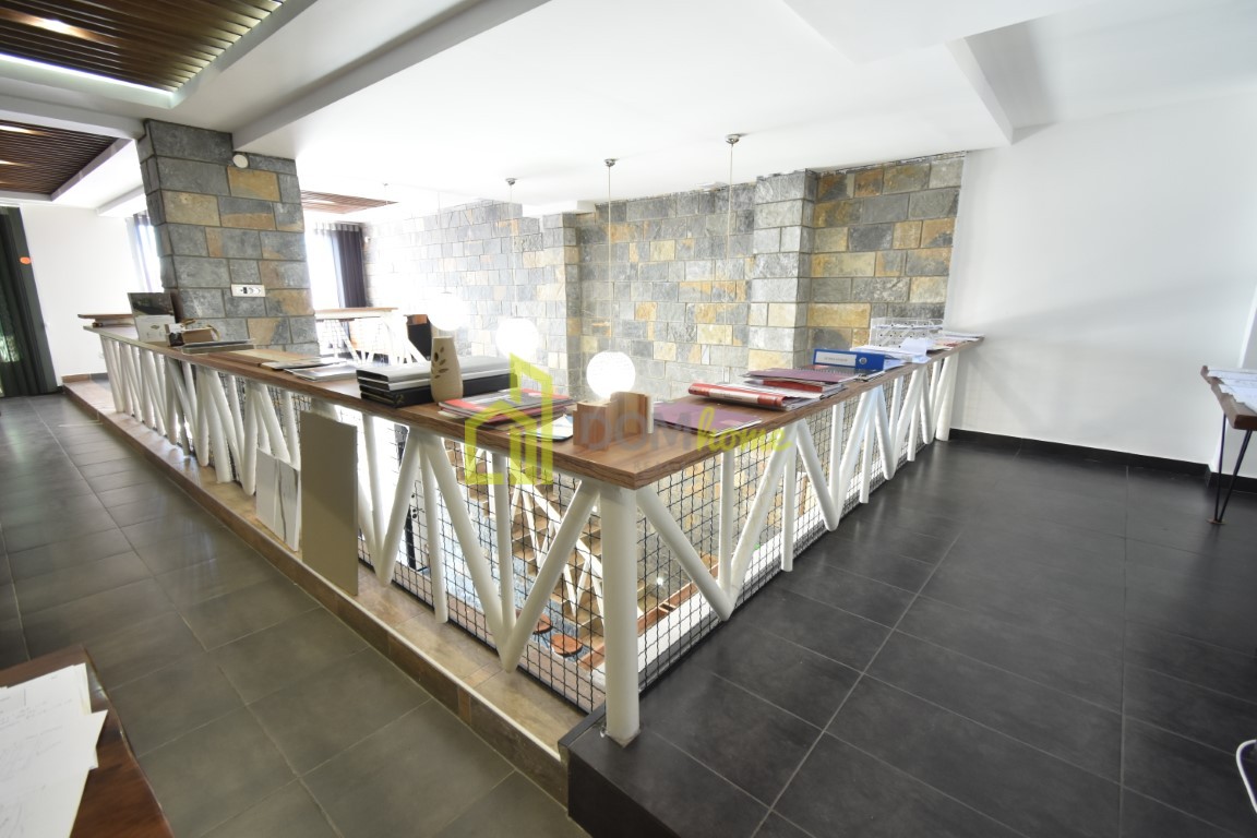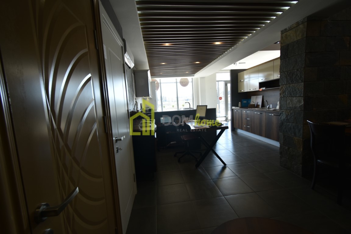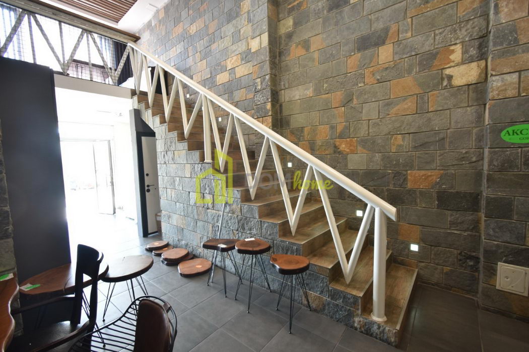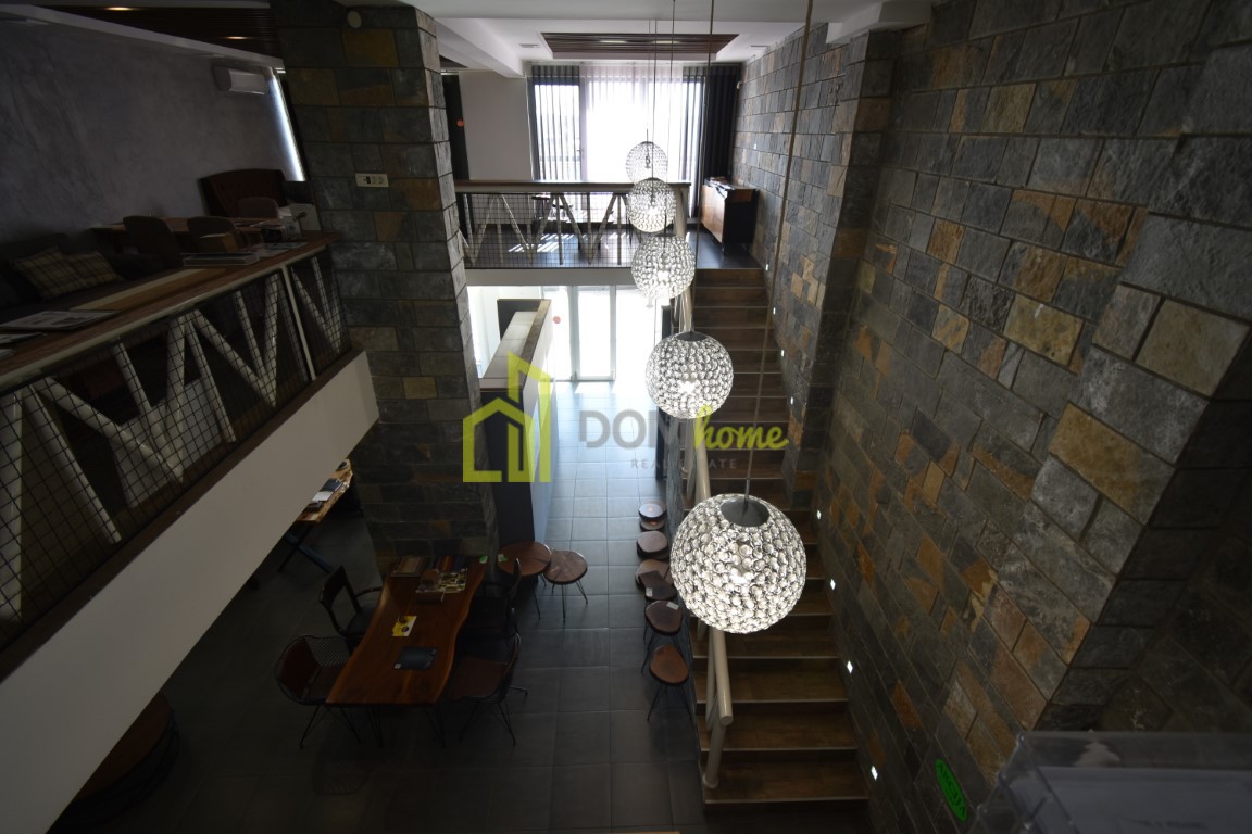 U dva je nivoa, prizemlje 90m2 i sprat površine 78m2, posjeduje terasu površine 186m2 koja je u vlasništvu prostora, dva ulaza i tri toaleta.