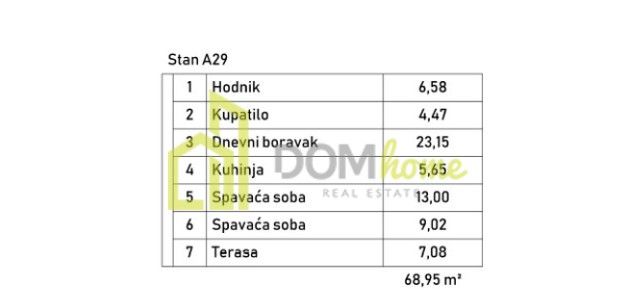 ✅ Struktura stana: Ulazni hodnik, dnevni boravak, kuhinja, trpezarija, spavaća soba, kupatilo i terasa.