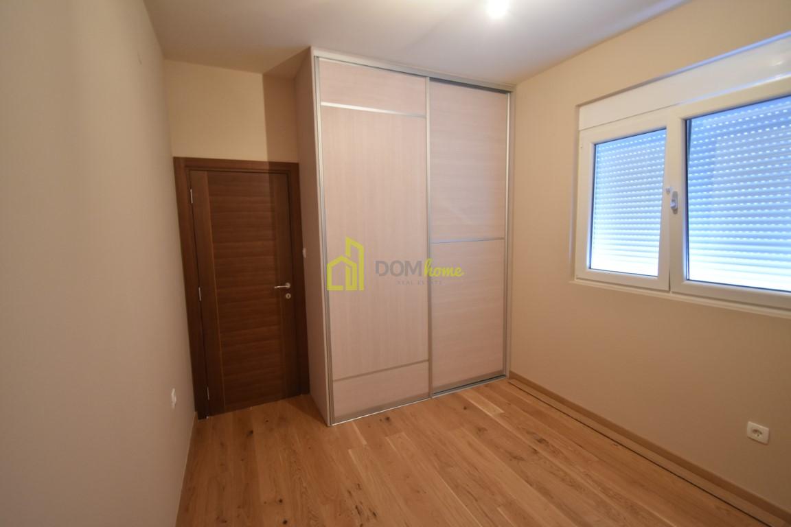 Struktura stana: ulazni hodnik, dnevna soba, kuhunja i trpezarija, dvije spavaće sobe, kupatilo, toalet i terasa.