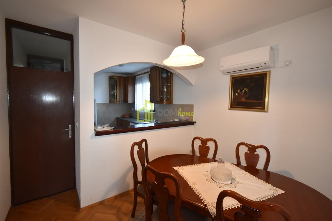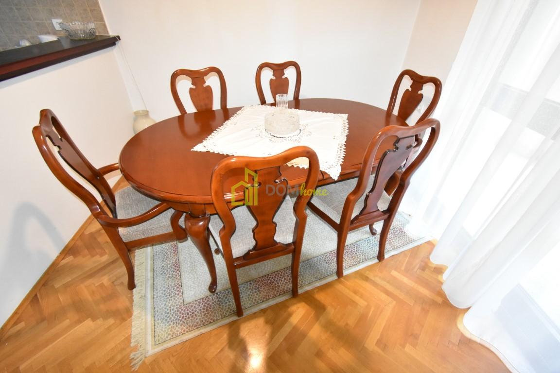 Namješten je, klimatizovan i ima ugrađeno centralno grijanje, posjeduje ostavu i jedno garažno mjesto.