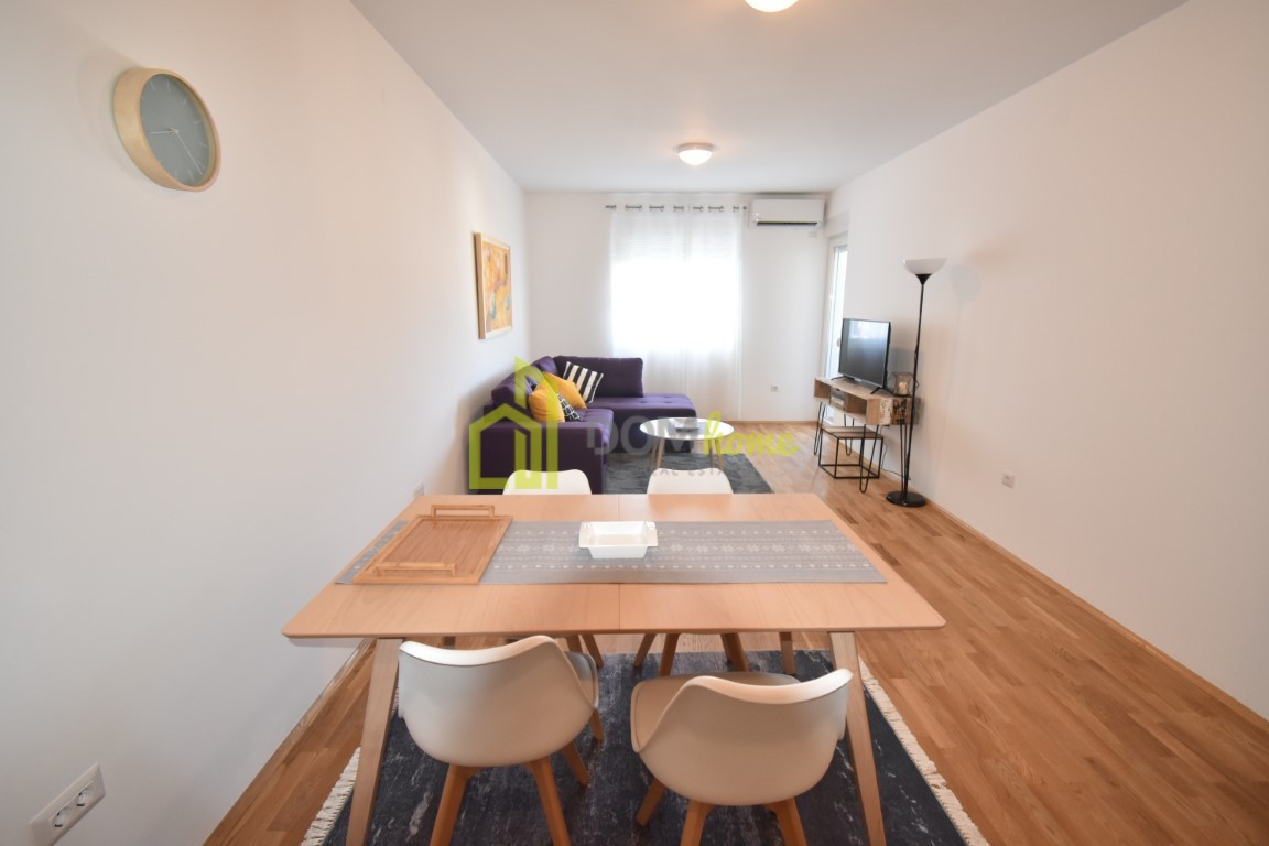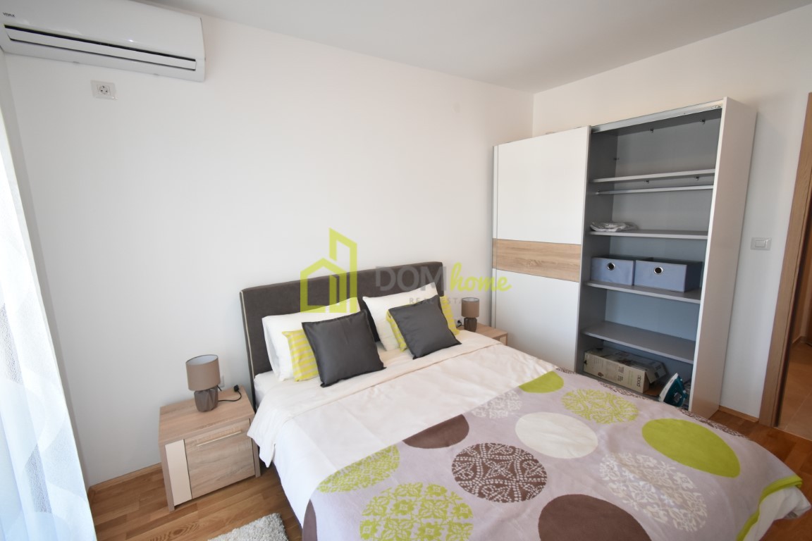 Nov je, neuseljavan, namjesten i klimatizovan, ima ugradjen multisplit sistem (grijanje/hladjenje) i posjeduje parking mjesto uracunato u cijenu zakupa.