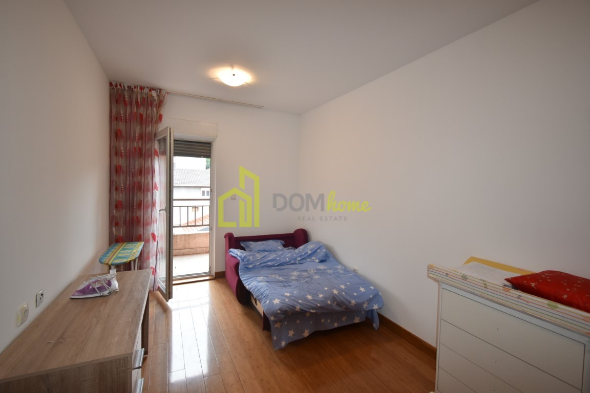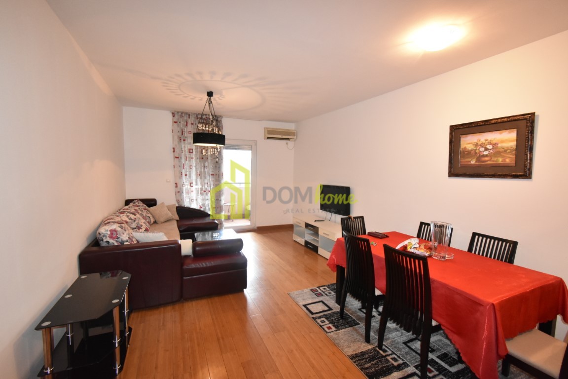 Kompletno je namješten i klimatizovan, orijentacija ja istok-zapad.
