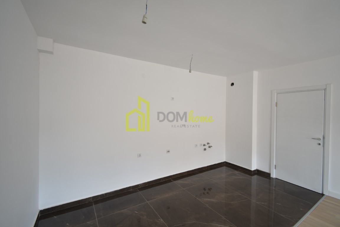 Struktura stana: ulazi hodnik, dnevni boravak, kuhinja i trepezarija, dvije spavaće sobe, kupatilo + toalet, tri terase.