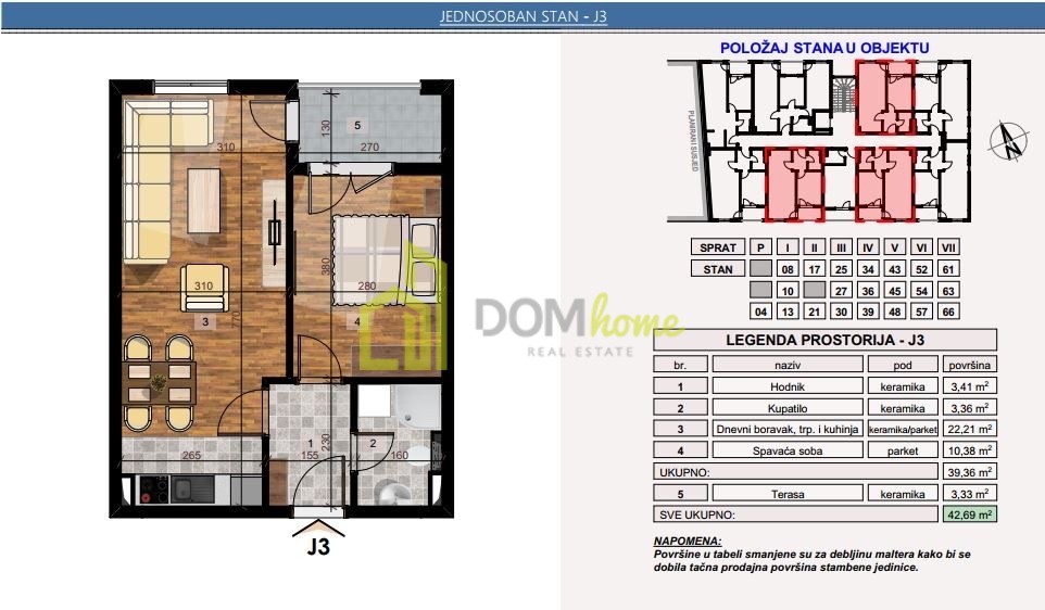 Raspoloživost stanova na prvom, drugom, trećem i četvrtom spratu.