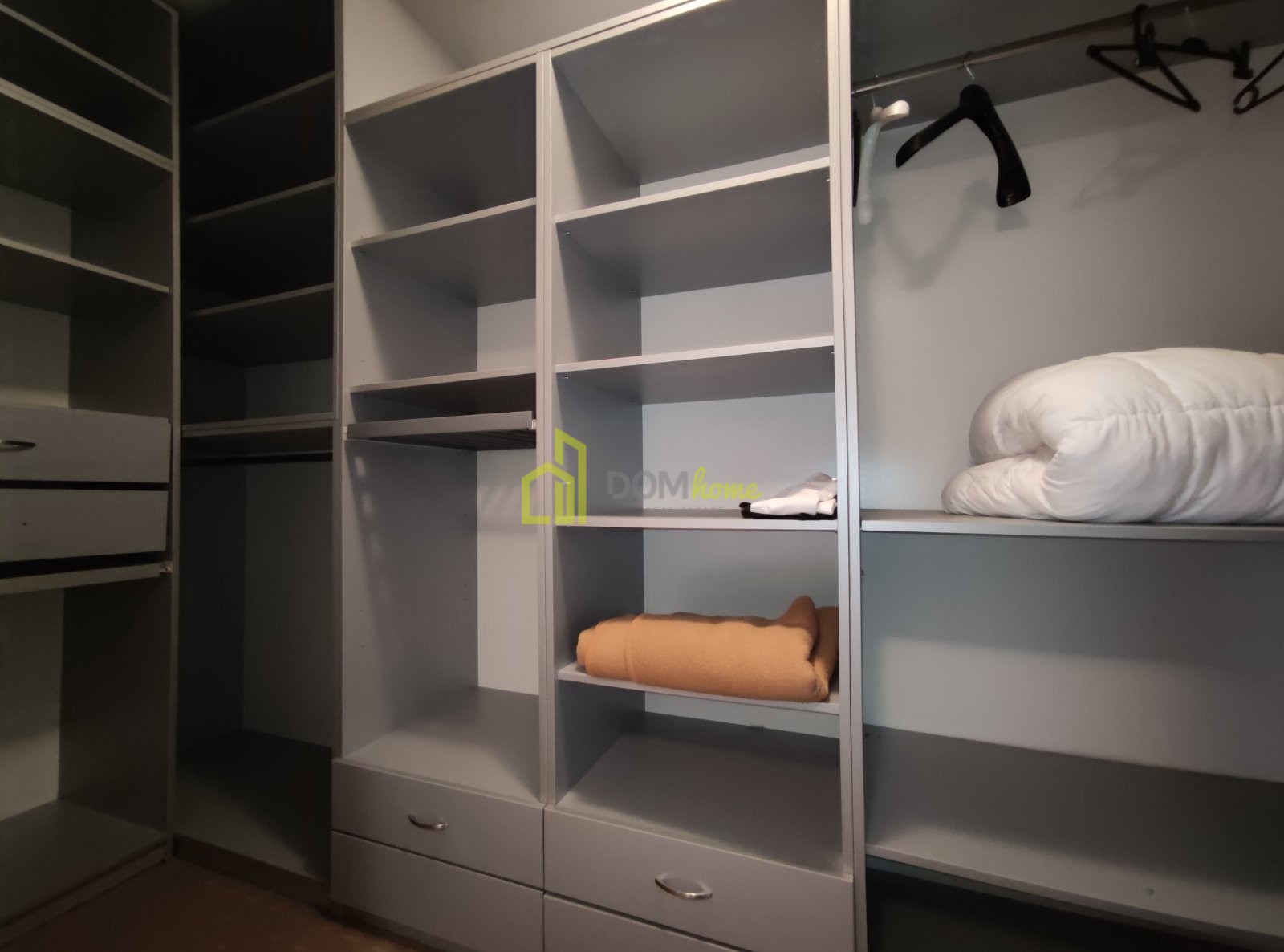 Struktura: ulazni hodnik, dnevnio boravak, trpezarija i kuhinja, tri spavaće sobe, kancelarija, dva kupatila i dvije terase.