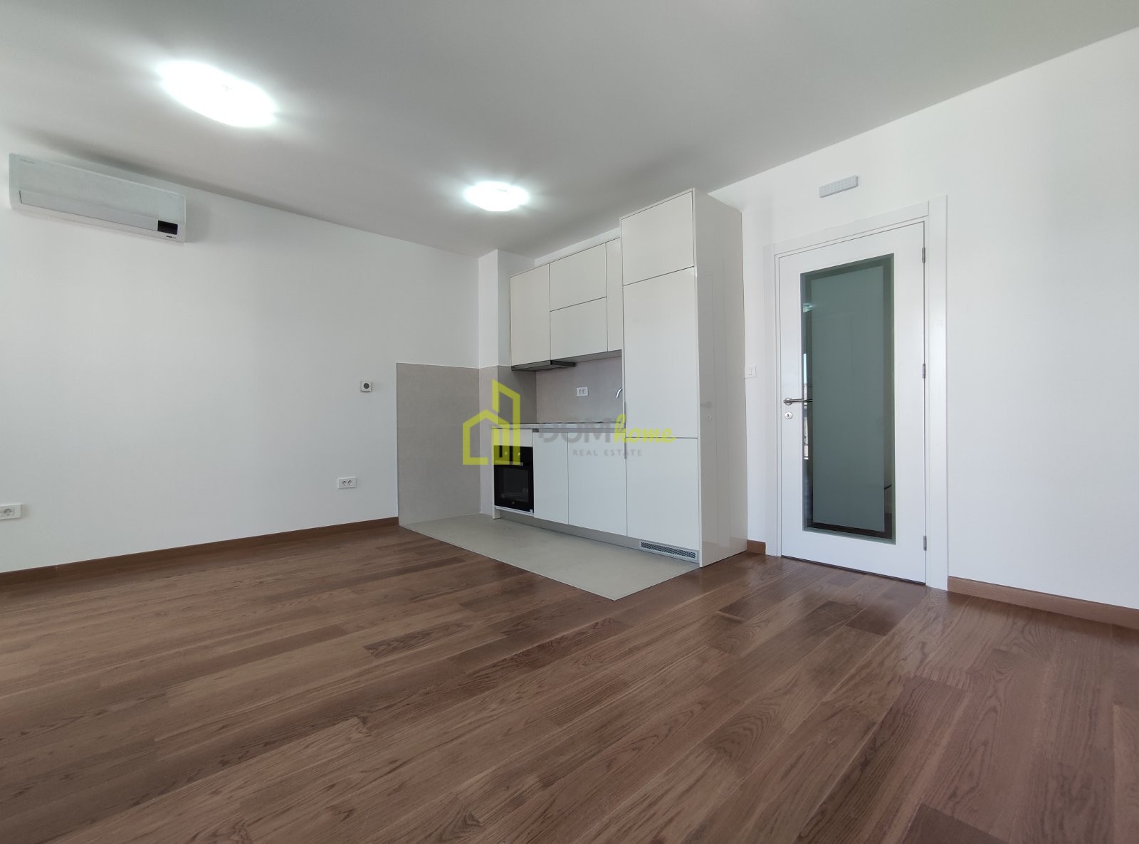 Klimatizovan je i izdaje se nenamješten sa kuhinjskim elementima.
