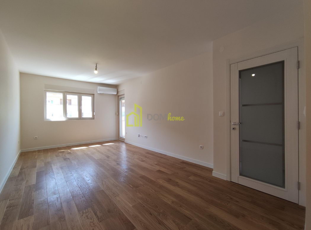 Klimatizovan je i izdaje se nenamješten sa kuhinjskim elementima.