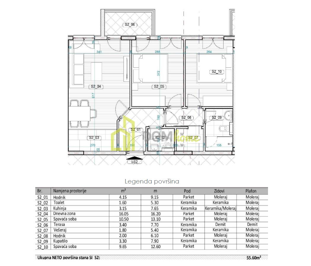 Dvosoban stan 56m2, Zabjelo