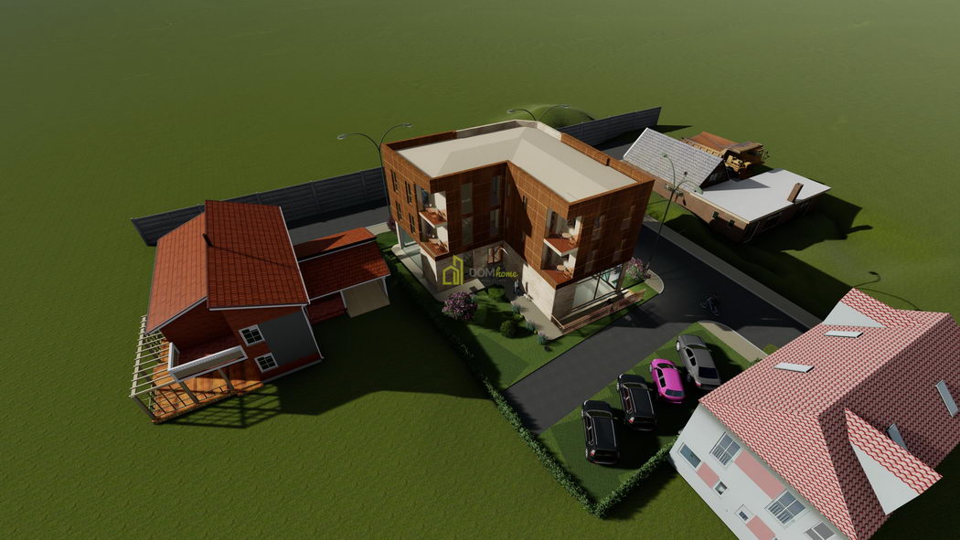 Zgrada je privatnog tipa sa svojim parkingom, okružena drvoredom.