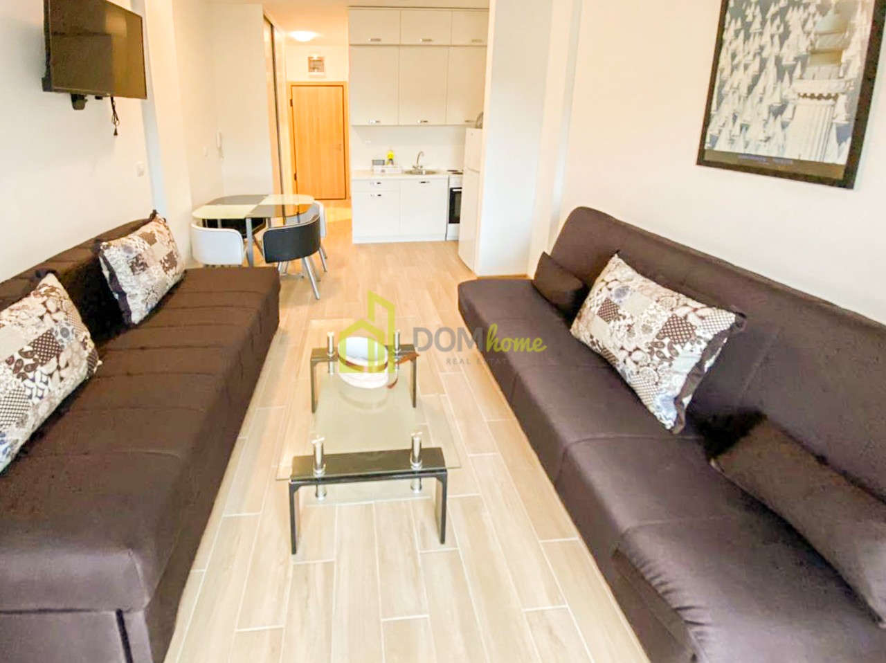 Struktura garsonjere: Ulazni hodnik, dnevni boravak, kuhinja, dnevna soba i terasa.
