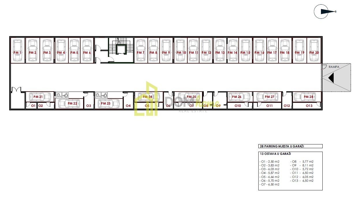 Postoji mogućnost i kupovine parking mjesta u podzemnu garažu po cijeni od 12000€, a zgrada će imati svoj okolni besplatni parking.
