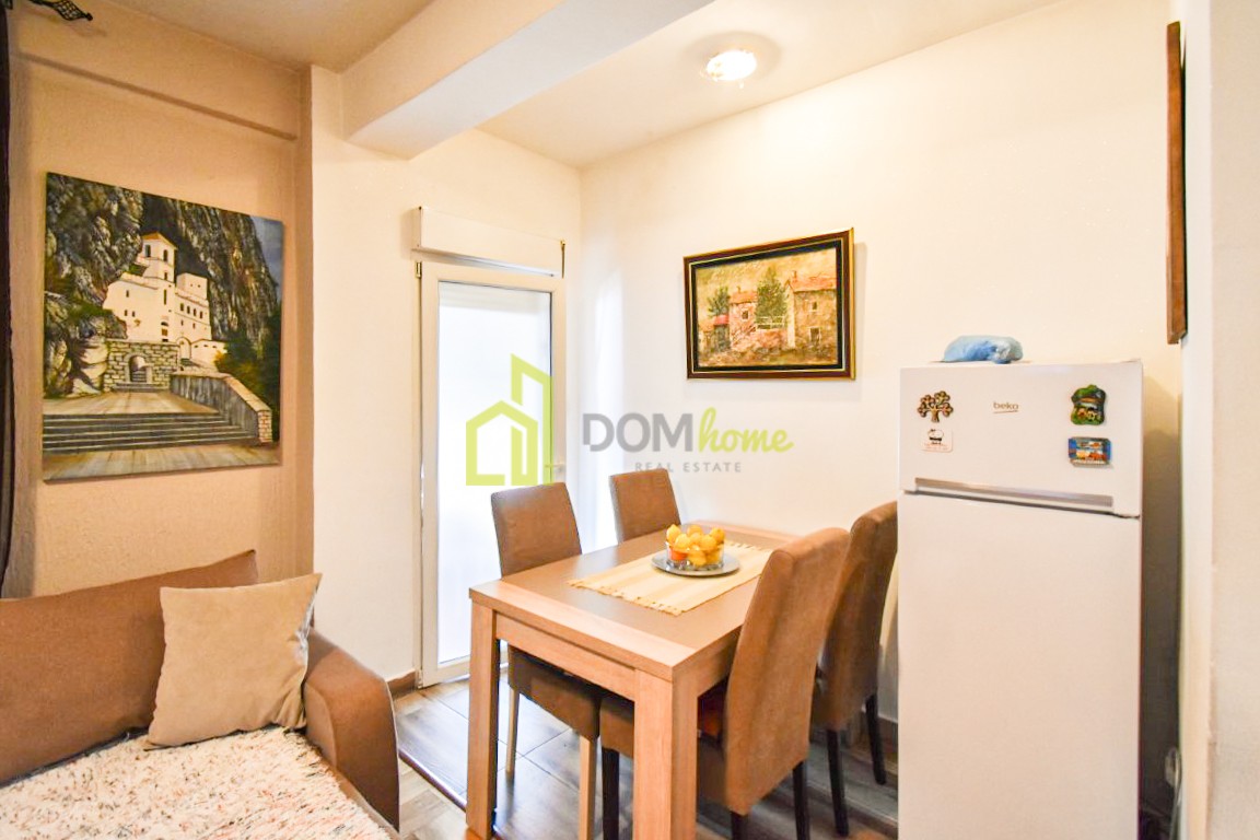 Struktura stana: ulazni hodnik, dnevni boravak sa trpezarijom i kuhinjom, spavaća soba, kupatilo i terasa.