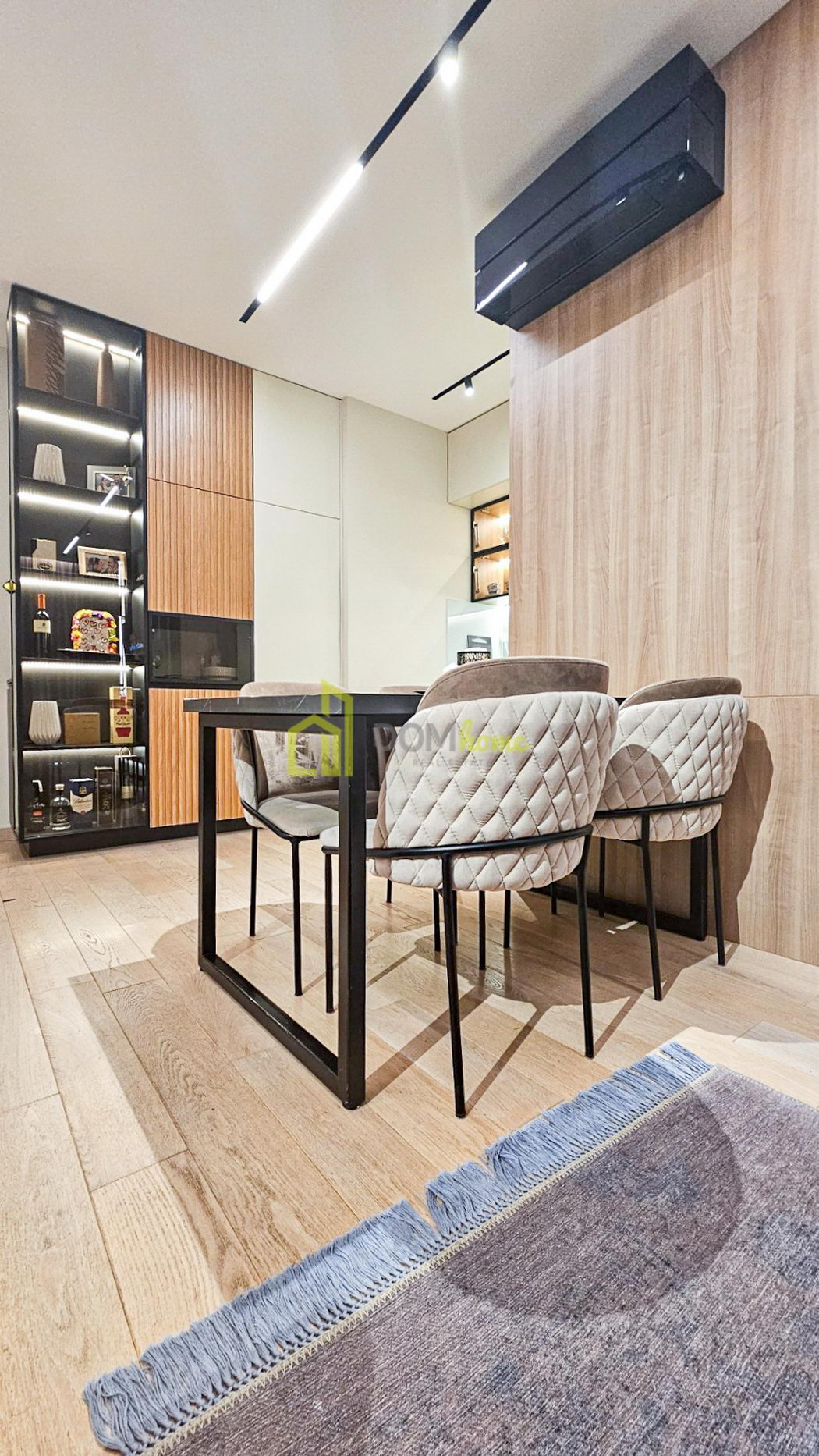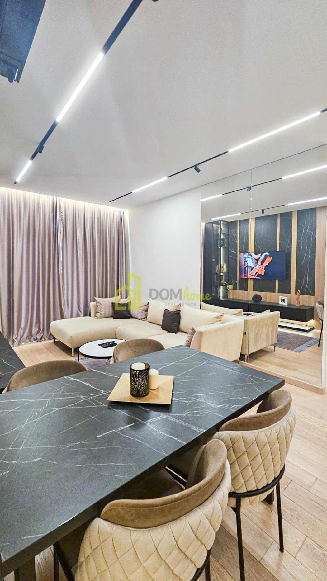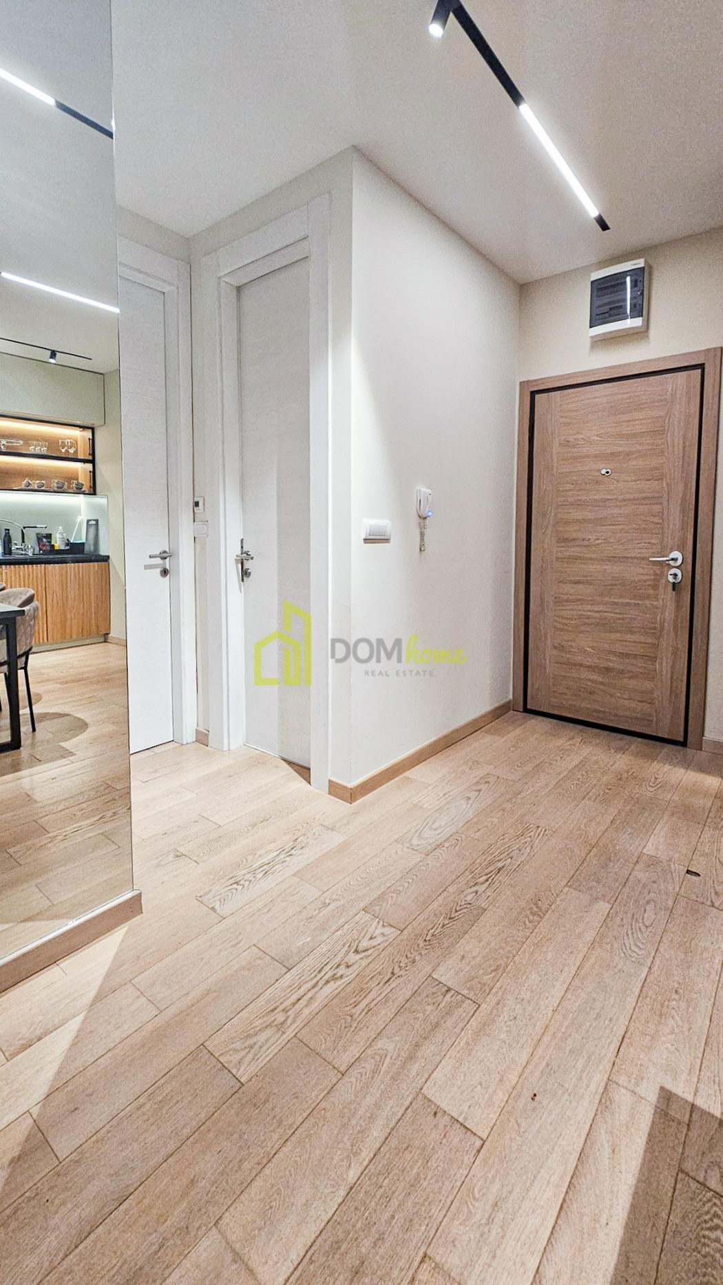 Stan karakterišu veliki fasadni otvori od poda do plafona sa termoprekid aluminijskim vratima, dok je unutrašnja stolarija 2.6 metara visine, što sve daje poseban luksuz i dodatni komfor boravka i življenja u stanu. Stan je posebno opremljen, shodno arhiteltonskom projektu enterijera, sa austrijskim parketom, najnovijim Mitsubishi multrisplit sistemom, urađeni gipsanim radovima i namjenski ugrađena IGuzzini i Delta Light rasvjeta. Kuhinja je od furniranog medijapana sa savremenim aparatima.