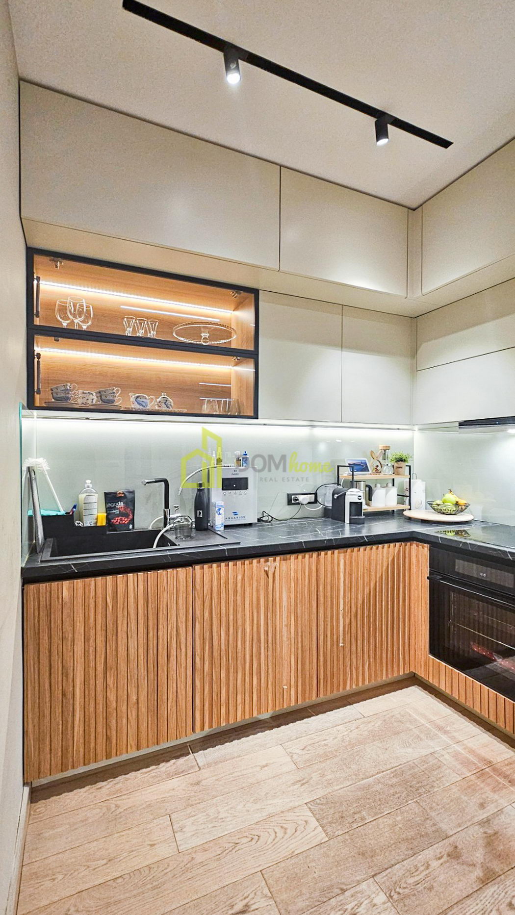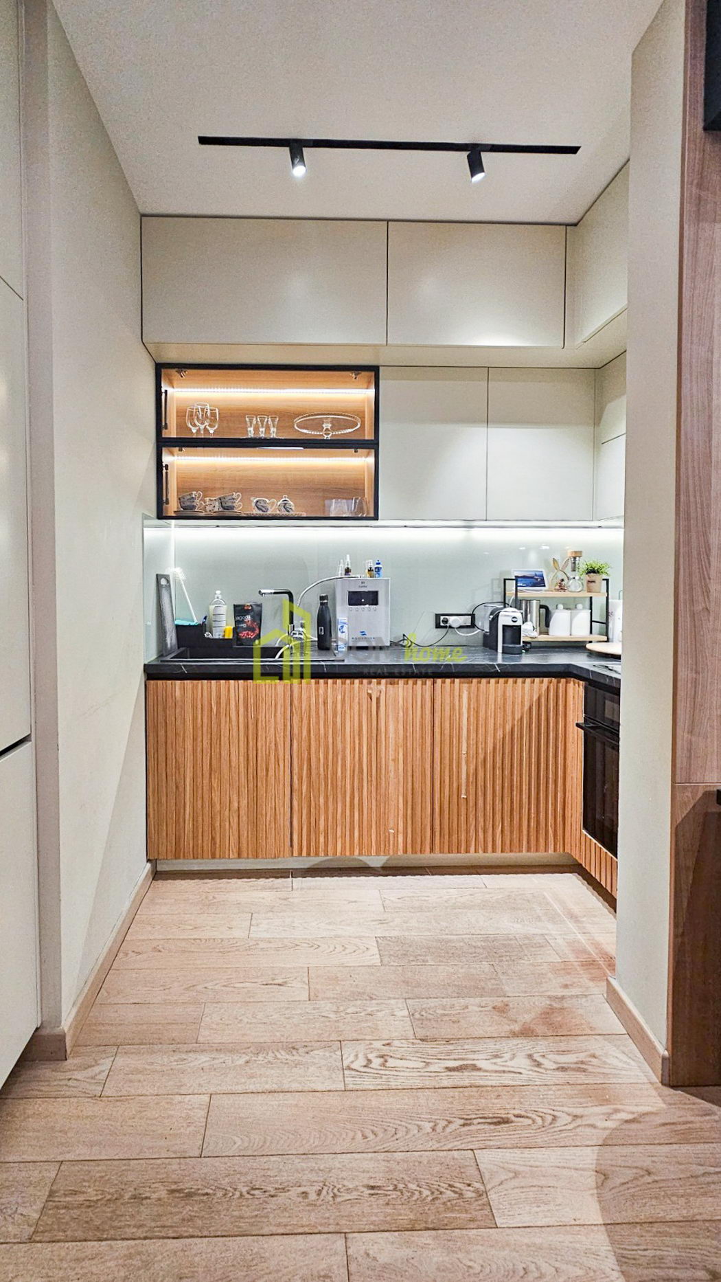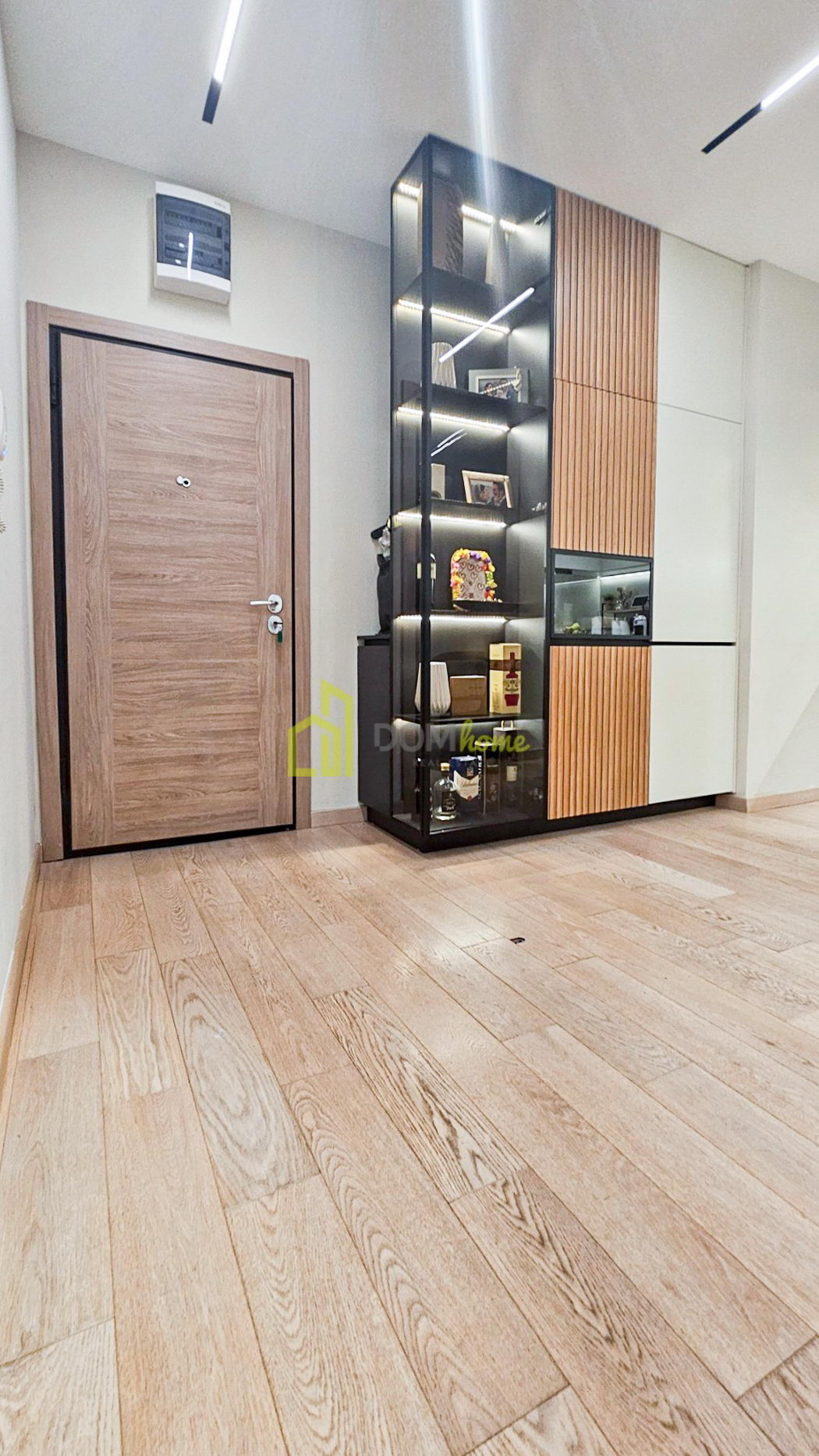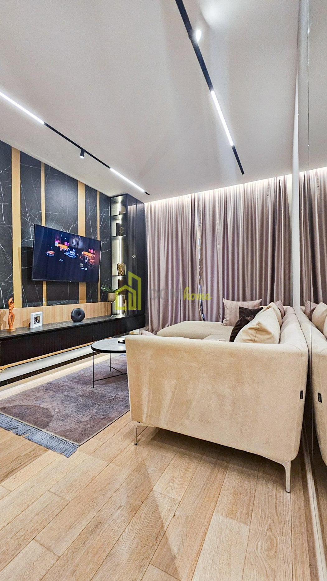Stan karakterišu veliki fasadni otvori od poda do plafona sa termoprekid aluminijskim vratima, dok je unutrašnja stolarija 2.6 metara visine, što sve daje poseban luksuz i dodatni komfor boravka i življenja u stanu. Stan je posebno opremljen, shodno arhiteltonskom projektu enterijera, sa austrijskim parketom, najnovijim Mitsubishi multrisplit sistemom, urađeni gipsanim radovima i namjenski ugrađena IGuzzini i Delta Light rasvjeta. Kuhinja je od furniranog medijapana sa savremenim aparatima.