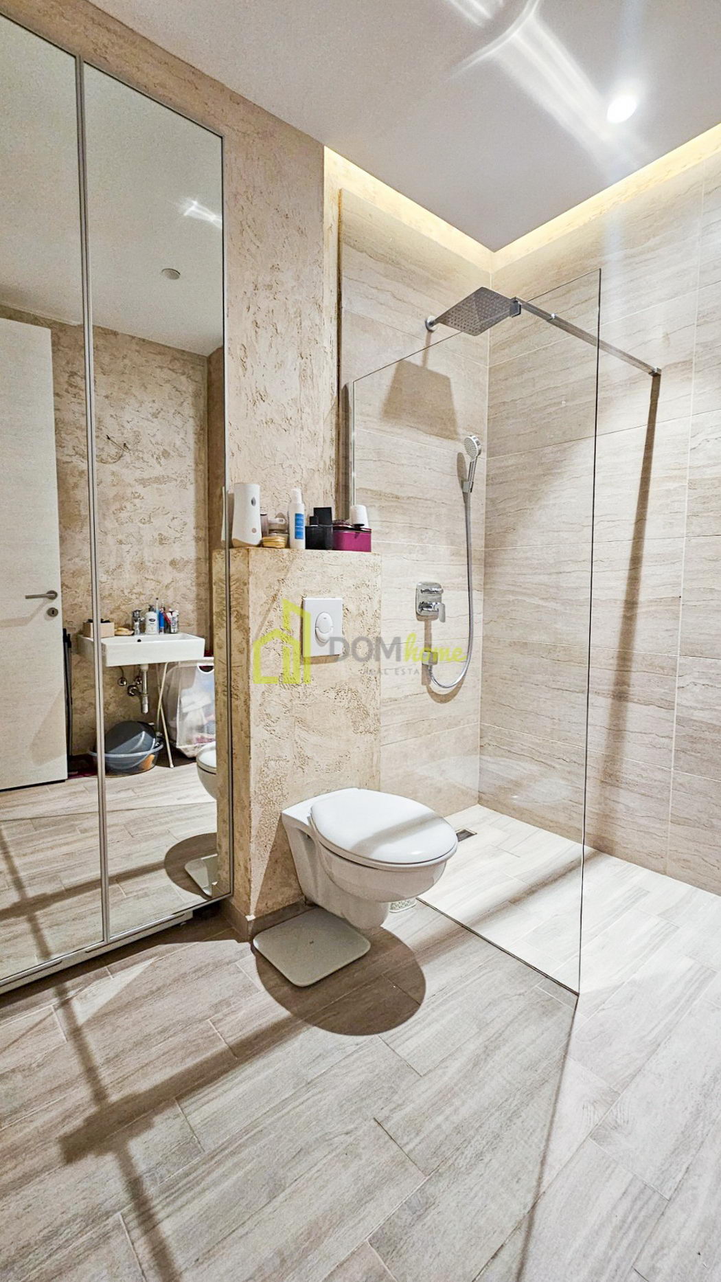Kupatilo je opremljeno podnim grijanjem, staklenom kabinnom i Hans Grohe, kao i Aristol Velus bojlerom.