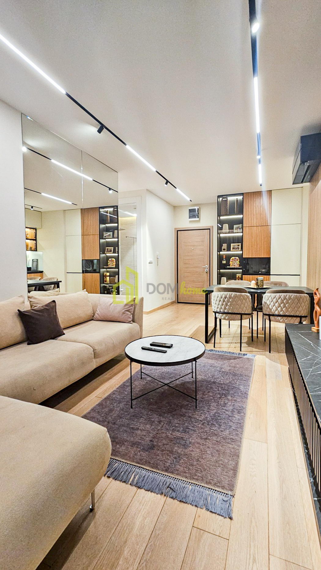 Nalazi se u ekskluzivnom objektu Euroglobus Residence na prvom spratu. Riječ je o ekskluzivno namještenom dvosobnom stanu, velicine 57 m2, na prvom spratu objekta.