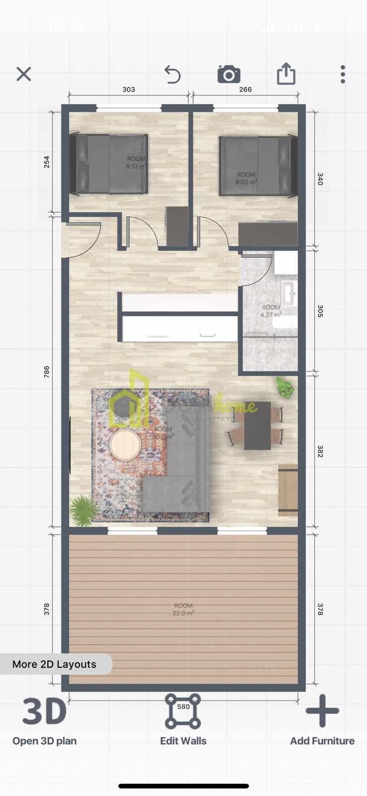 Struktura stana: Ulazni hodnik, dnevni boravak, kuhinja, dvije spavaće sobe, kupatilo i terasa od 20m2.