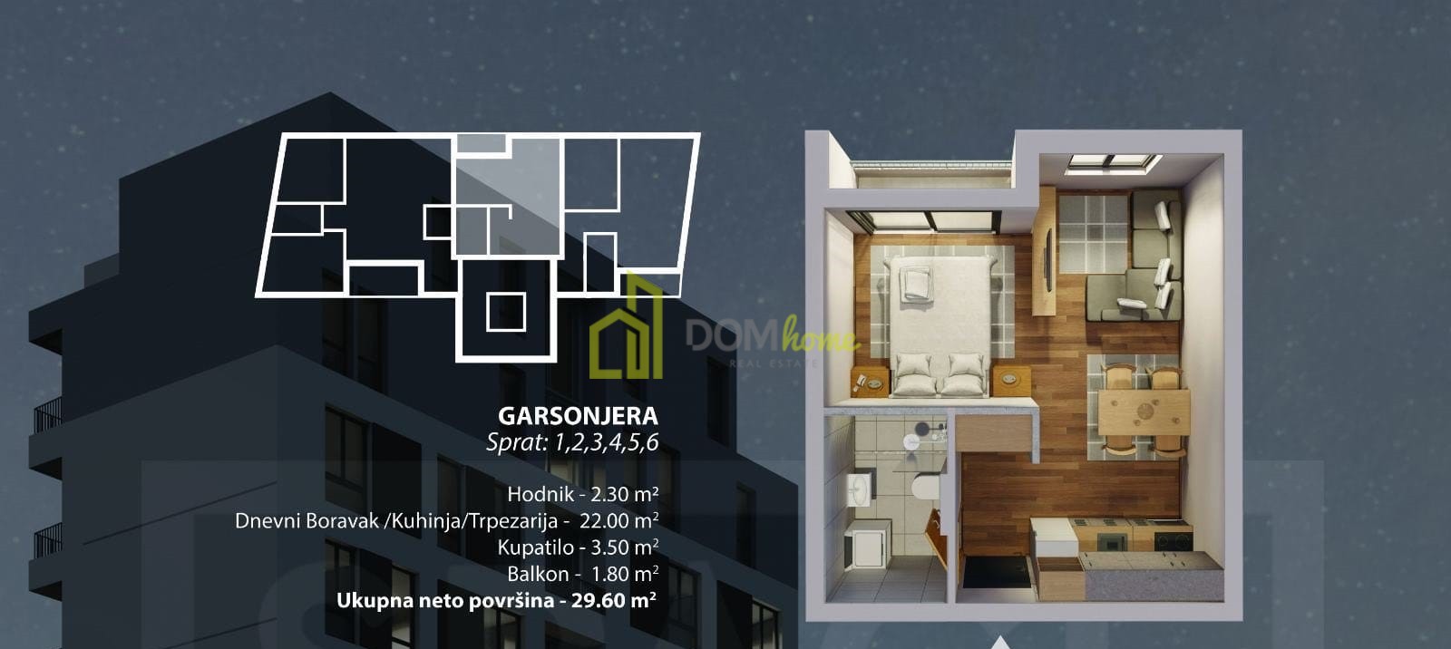 U zavisnosti od sprata cijena varira od 58400€ do 72550€.