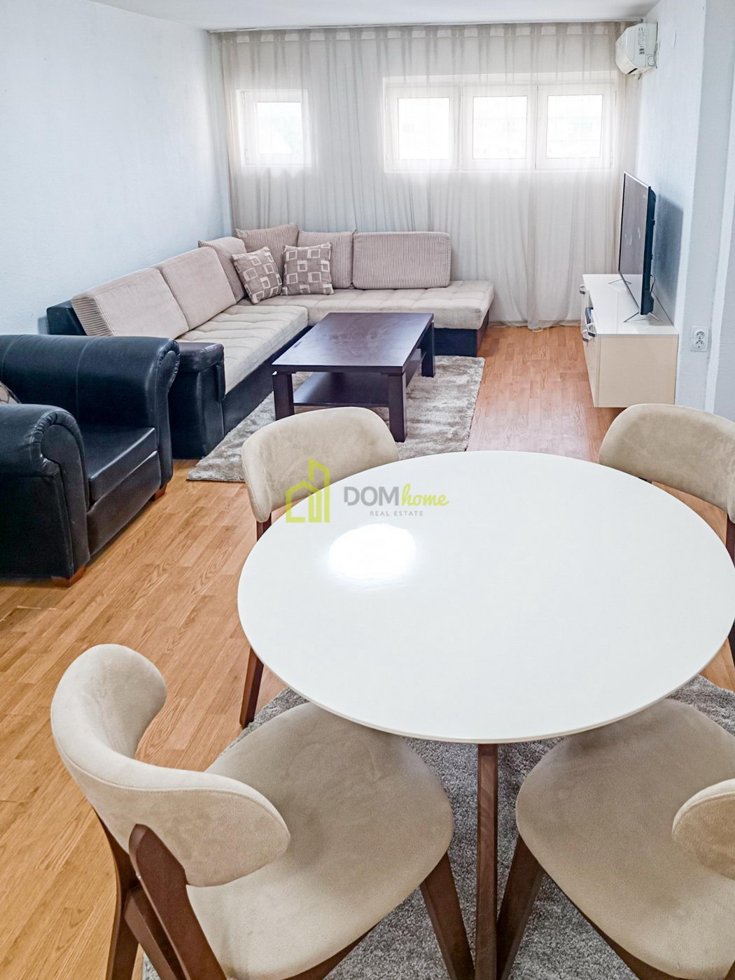 Struktura stana: Ulazni hodnik, dnevni boravak, kuhinja, trpezarija, dvije spavaće sobe, kupatilo i terasa.