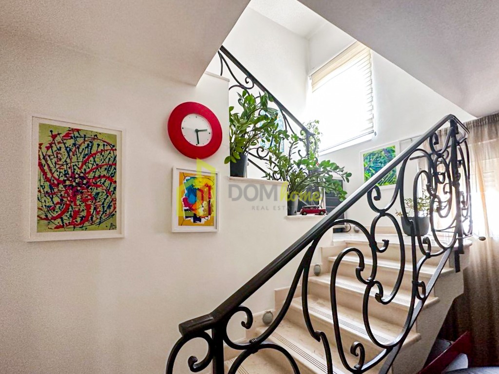 Struktura stana: Ulazni hodnik, dnevni boravak, kuhinja, trpezarija, četiri spavaće sobe, dva kupatila, tri terase i garaža.