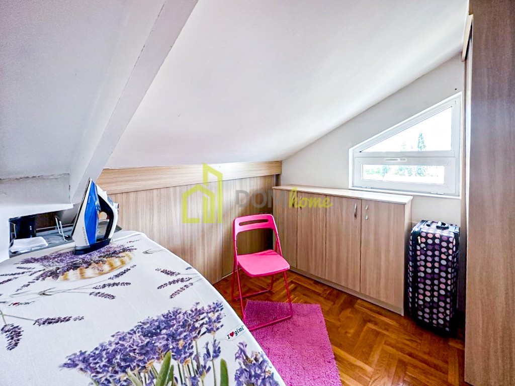 Stan ima upisanih 58m2 sprata i 58m2 neupisanih u potkrovlju.