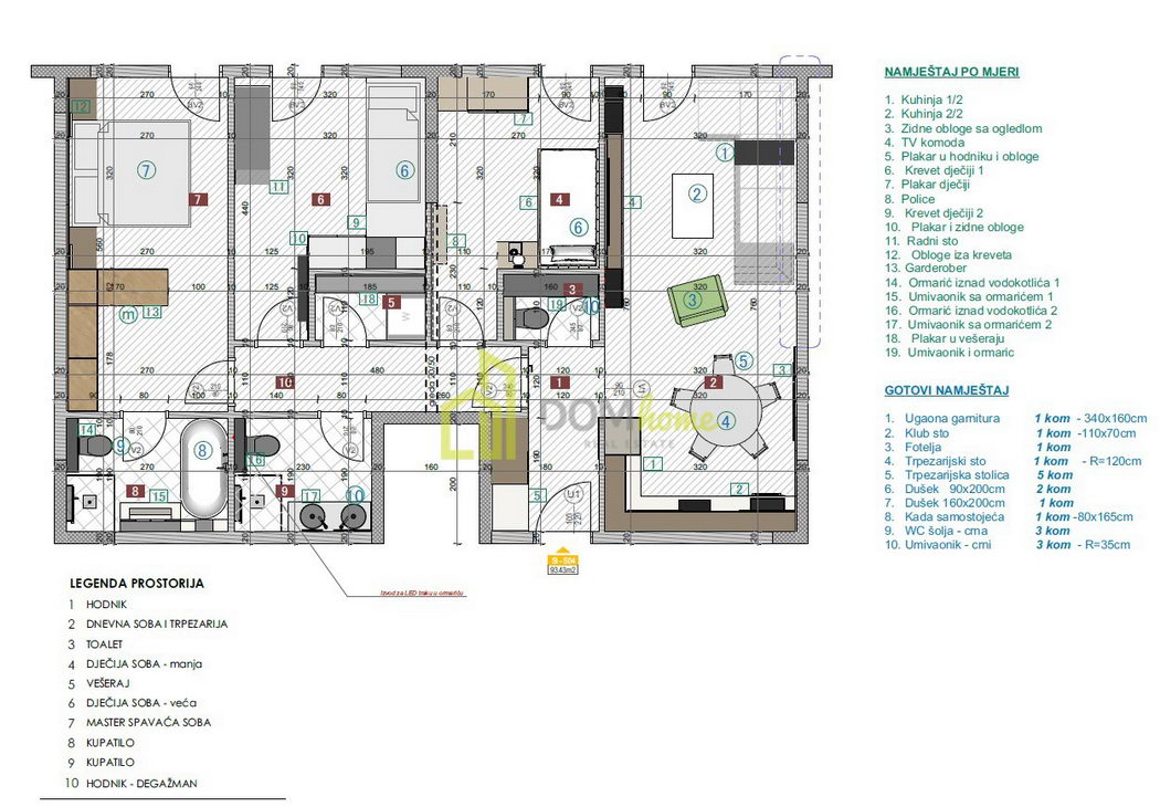 • Ukupna površina stana: 94 kvadratnih metara