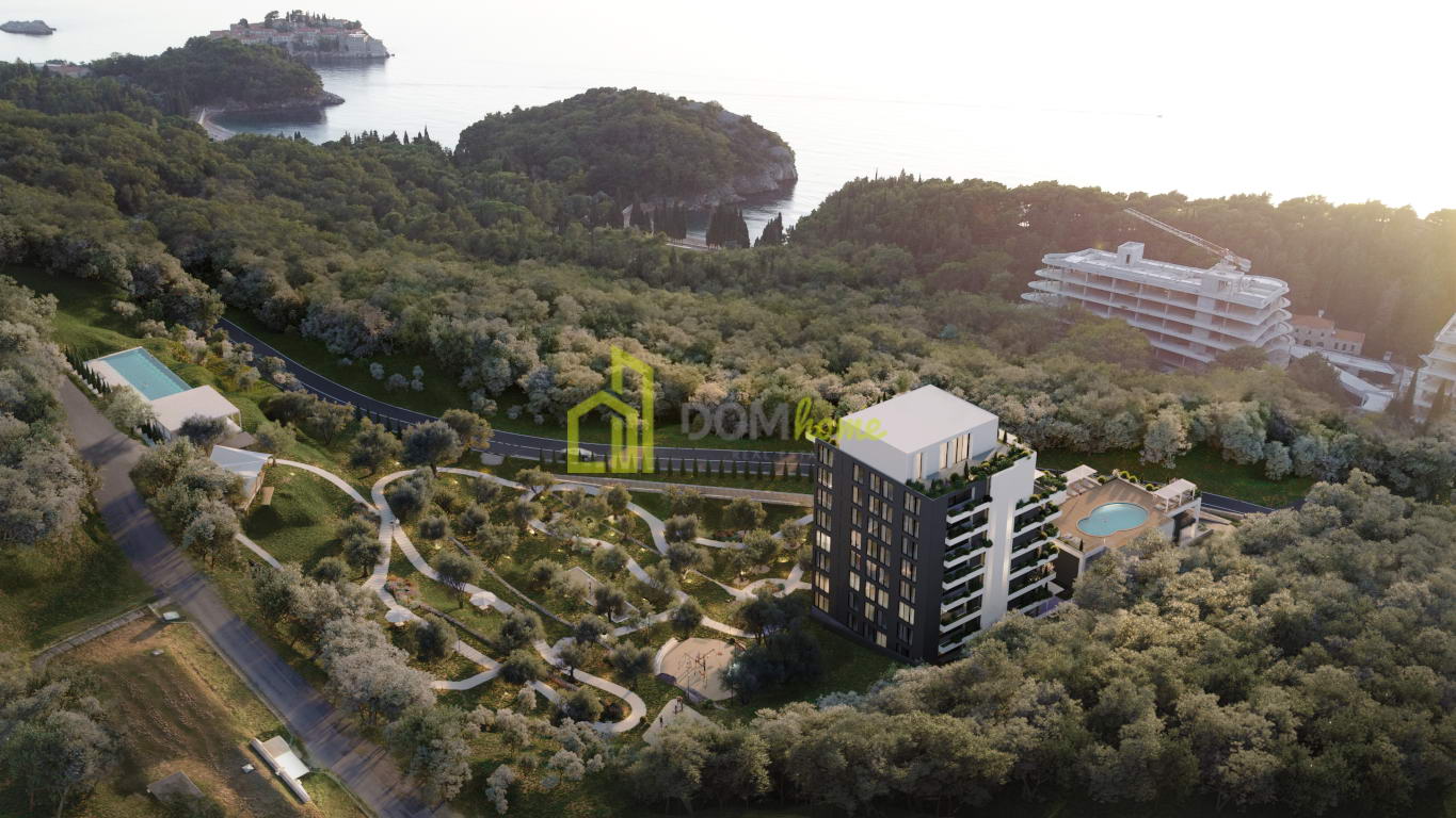 Nalazi se u novom luksuznom kompleksu u sklopu maslinovog parka, blizu Svetog Stefana, uz glavnu Jadransku magistralu, udaljen 400 metara od mora i 200 metara od parka Miločer.