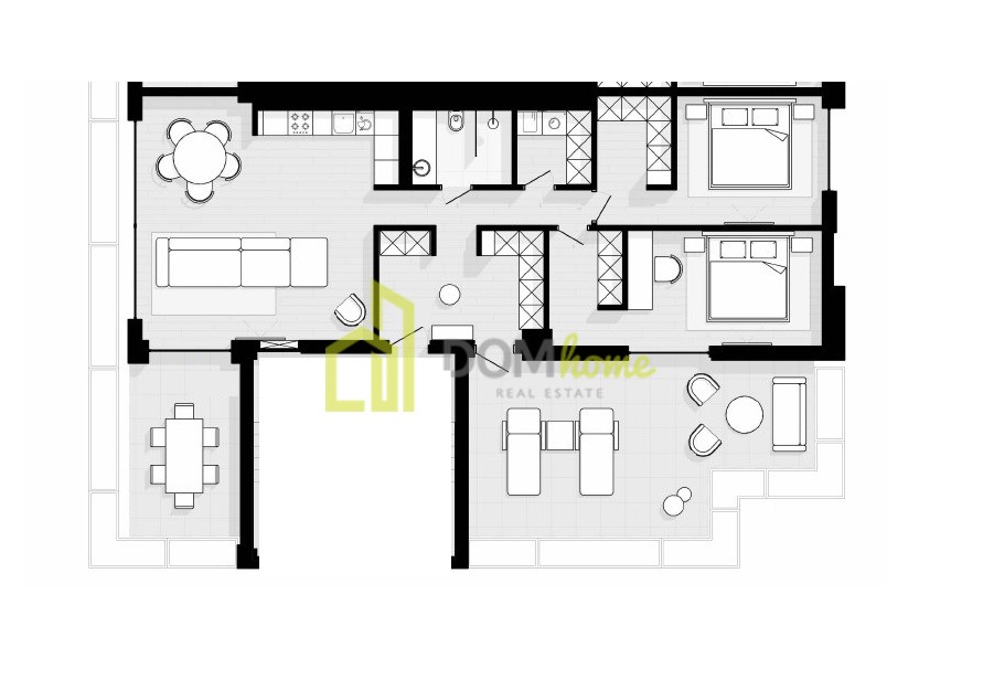 Struktura: Ulazni hodnik, dnevni boravak, kuhinja, trpezarija, dvije spavaće sobe, kupatilo, vešeraj, velika terasa od 36m2 i mala terasa.