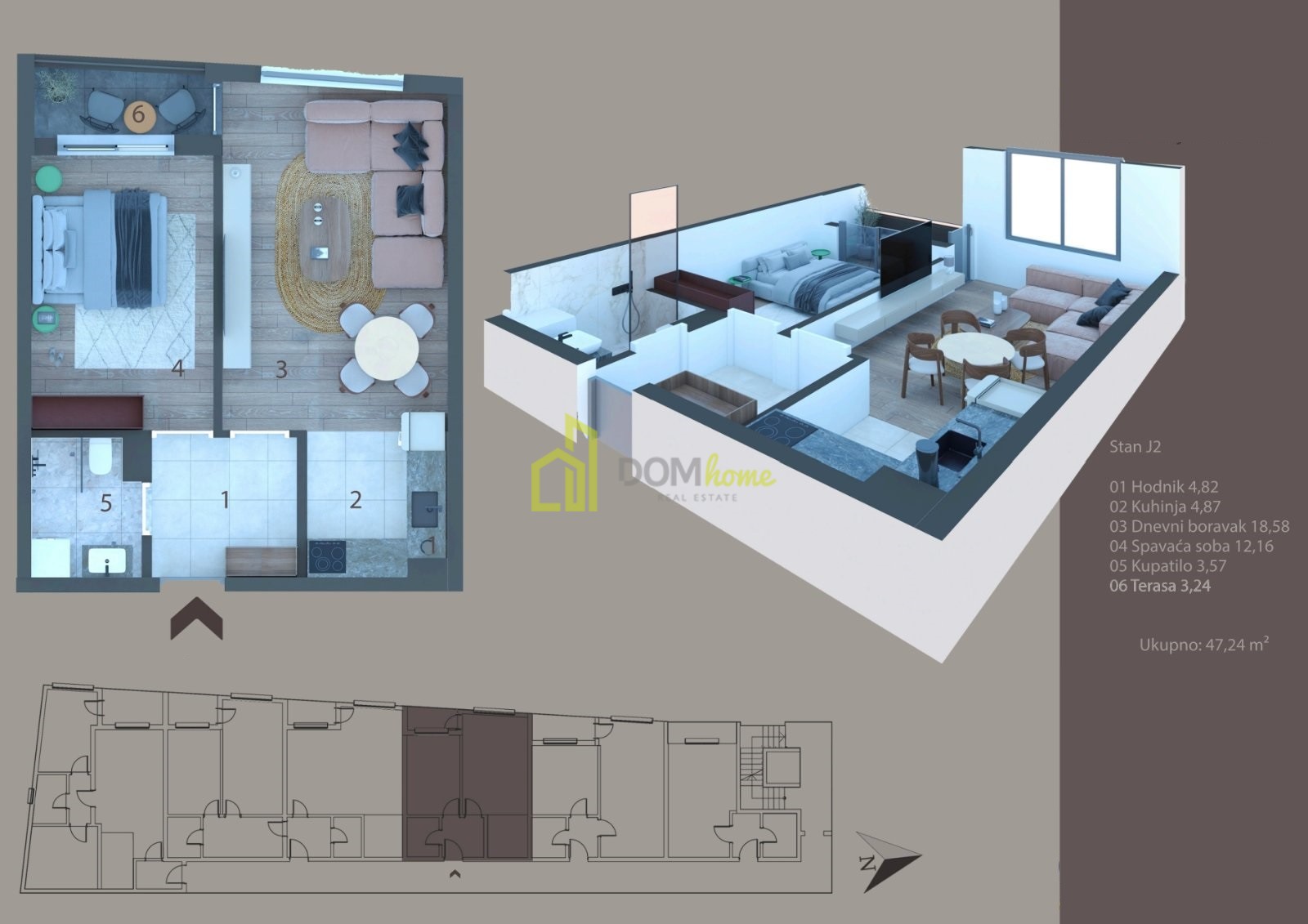 ✅ Struktura stana: Ulazni hodnik, dnevni boravak, kuhinja, trpezarija, spavaća soba, kupatilo i terasa.