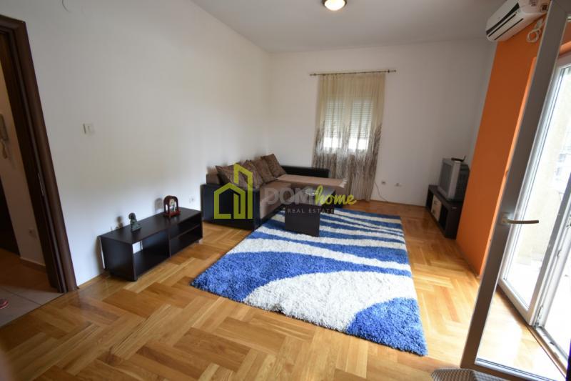 Za izdavanje jednosoban stan 44m2, Zabjelo, kod Codre. Stan se nalazi na visokom prizemlju, komplet je namješten i klimatizovan.