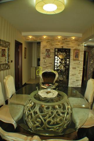 Stan povrsine 157m2 se nalazi na atraktivnoj lokaciji, u Moskovskoj ulici. Ima 4 spavace sobe, 4 kupatila sa veserajem, luksuzno opremljen, klimatizovan, multisplit sistem grijanje-hladjenje, podno grijanje, kamin.. Takodje ima video interfon, alarm sistem. Nalazi se na 6. spratu. Postoji mogucnost korigovanja cijene samo ako je zakup na duzi vremenski period.