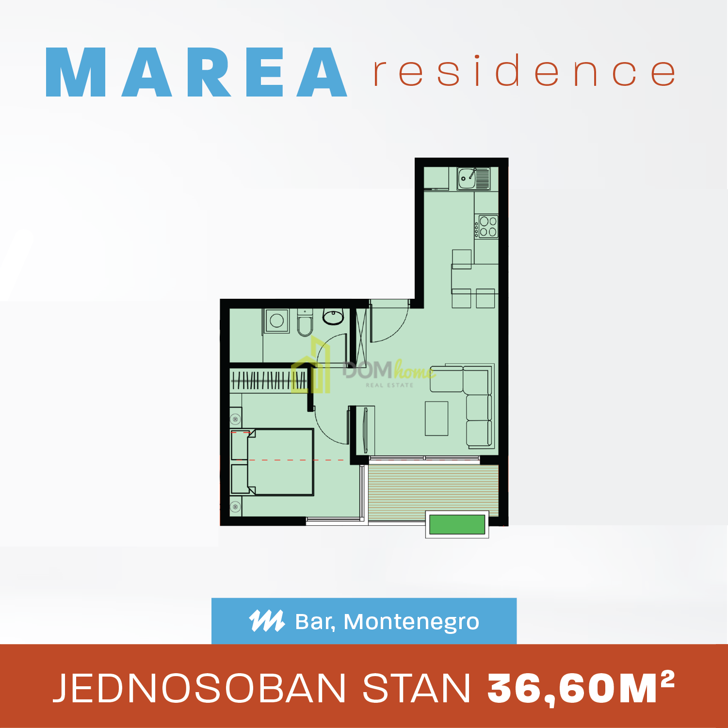 MAREA Residence, Bar"ın sakin bir semtinde, plaja, şehir merkezine, tarihi merkeze ve spor tesislerine sadece birkaç dakika uzaklıkta inşa edilen bir binadır.