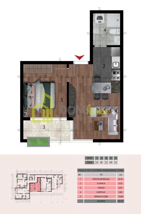 Šušanj"da 36,60 m2"lik birkaç tek odalı daire satılıktır.