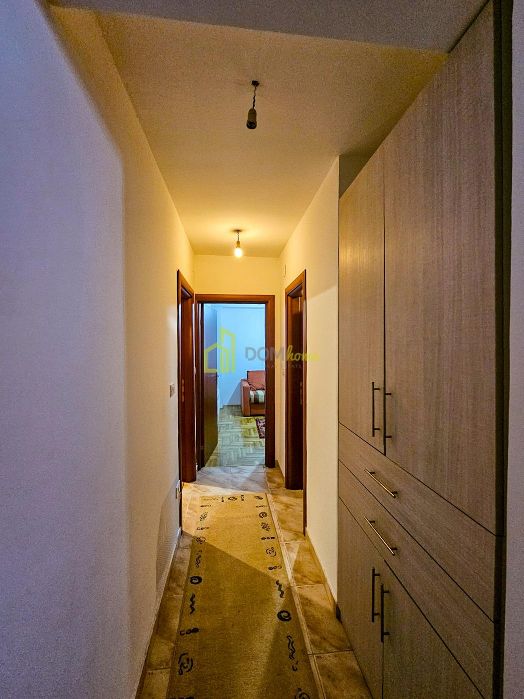 Daire yapısı: Giriş holü, oturma odası, mutfak, yemek odası, üç yatak odası, banyo, tuvalet ve teras.