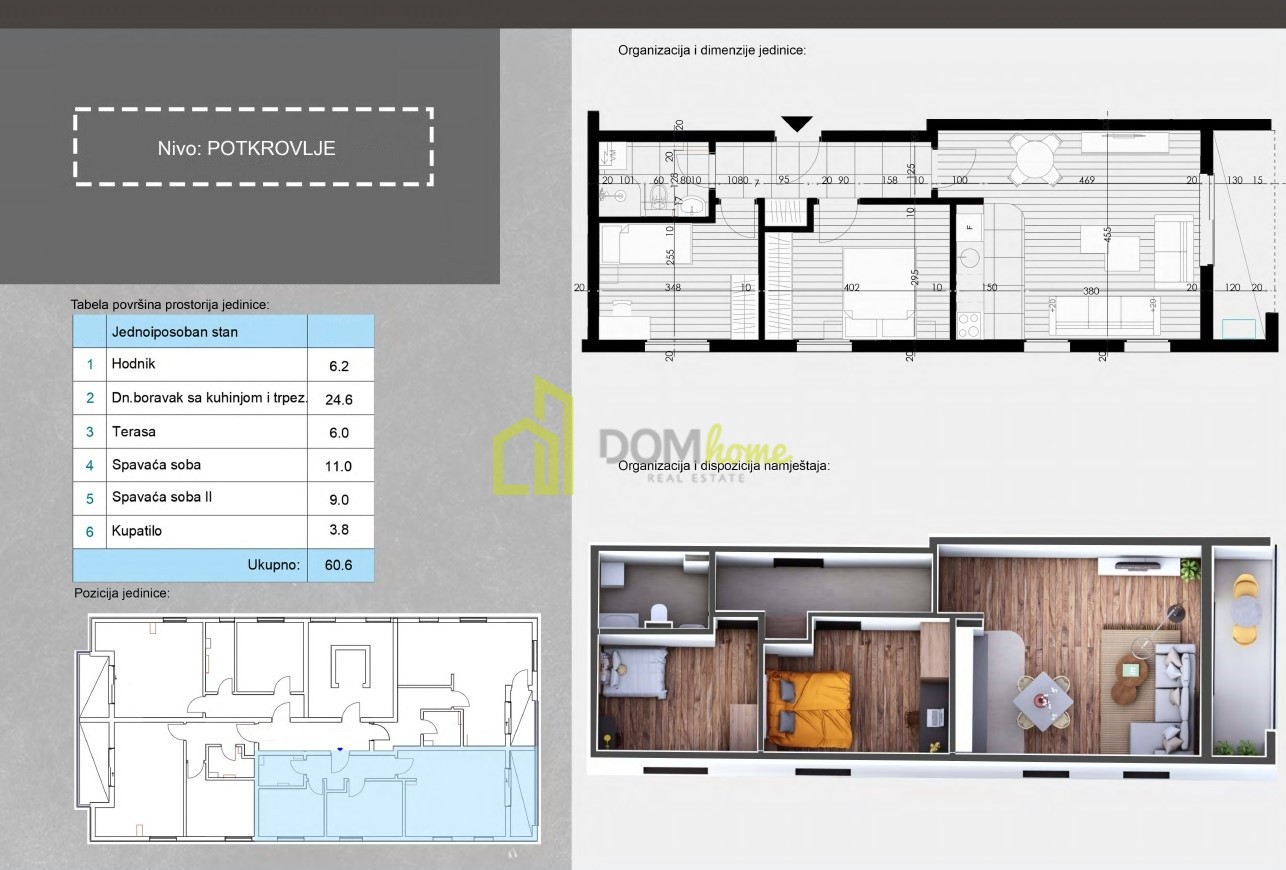 🏠 Satılık iki yatak odalı daire 60.60m², Momišići, Podgorica.