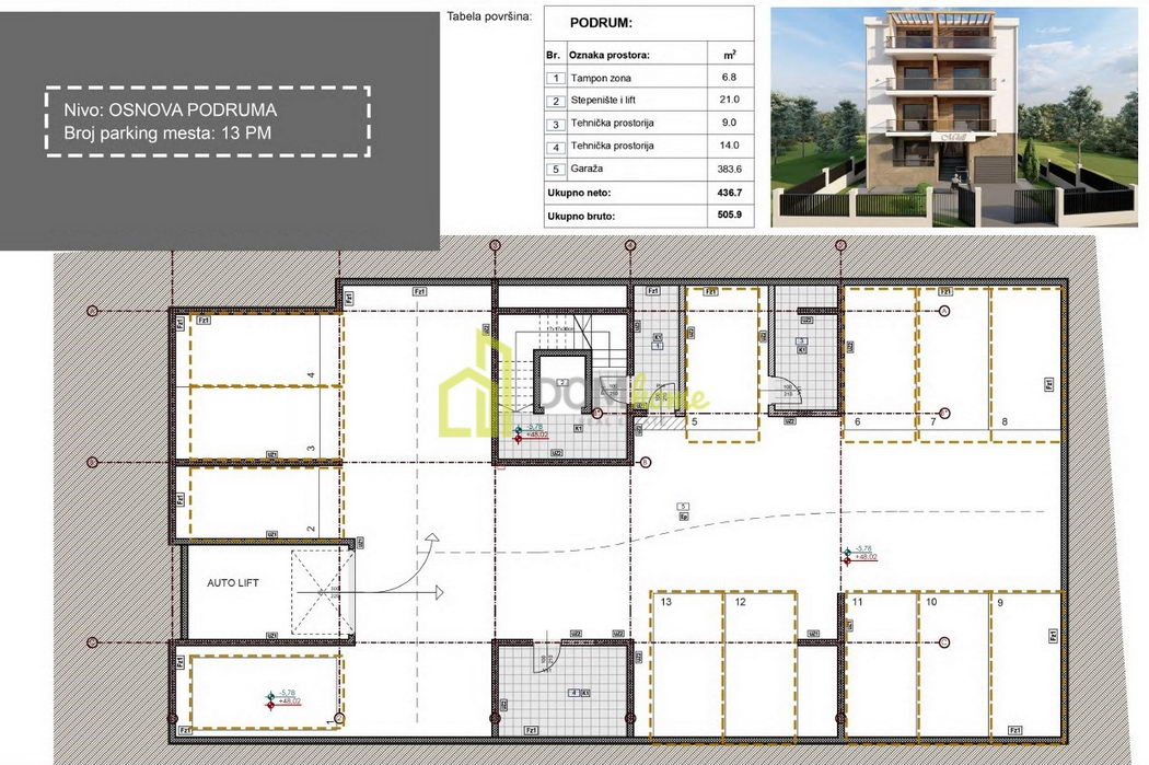 İki odalı daire 60.60m², Momišići - Satılık, İnşaat halinde, Garaj