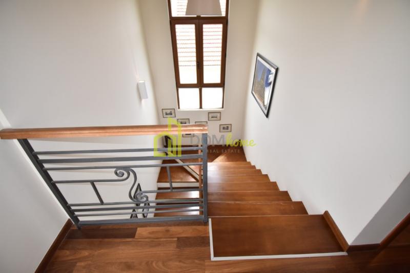 Za izdavanje kuća 260m2, Zabjelo Nalazi se na placu od 800m2 i sastoji se od suterena,prizemlja i prvog sprata/potkrovlja. U suterenu je garaza sa direktnim ulazom u kuću,hodnik,veseraj(tehnicka soba),kupatilo, i jos jedna soba od 20m2(moze biti gostinska soba,djecja igraonica,teretana...).Na prizemlju se nalaze hodnik,kupatilo,dnevna soba,trpezarija,kuhinja i biblioteka-radna soba.Na spratu su 4 spavace sobe i jedno zajednicko kupatilo, dok jedna soba ima svoj garderober i pripadajuce kupatilo. Dnevni boravak,trpezarija,biblioteka i tri spavaće sobe imaju svoje terase. U dvoristu postoji jos jedna ljetnja terasa,roštilj,staze sa rasvjetom,ukrasno drveće i cvijeće.Moguće je izgraditi i bazen. ima ugradjene sisteme bezbjednosti(alarm i kamere,interfon),solarne kolektore,centralni bojler,efikasnu i ekonomicnu klimatizaciju(inverterski multi split sistem, itd. Uveden internet i kablovska televizija. Trenutno je manjim dijelom namještena,odnosno ima namještenu kuhinju,garderober i jednu spavaću sobu. Prilikom zakupa obavezan je depozit u visini prve mjesečne zakupnine.