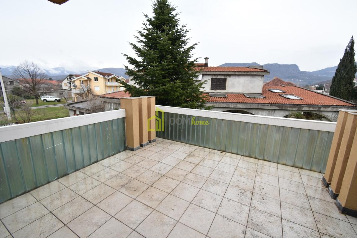 Kuca je kompletno namjestena, ima 4 spavace sobe+3 radne sobe u prizemlju. Klimatizovana, ima i centralno grijanje na drva, struju, kamin. Kuca posjeduje veliku garazu, kapiju na daljinsko upravljanje. Ima veliko dvoriste sa zelenilom.