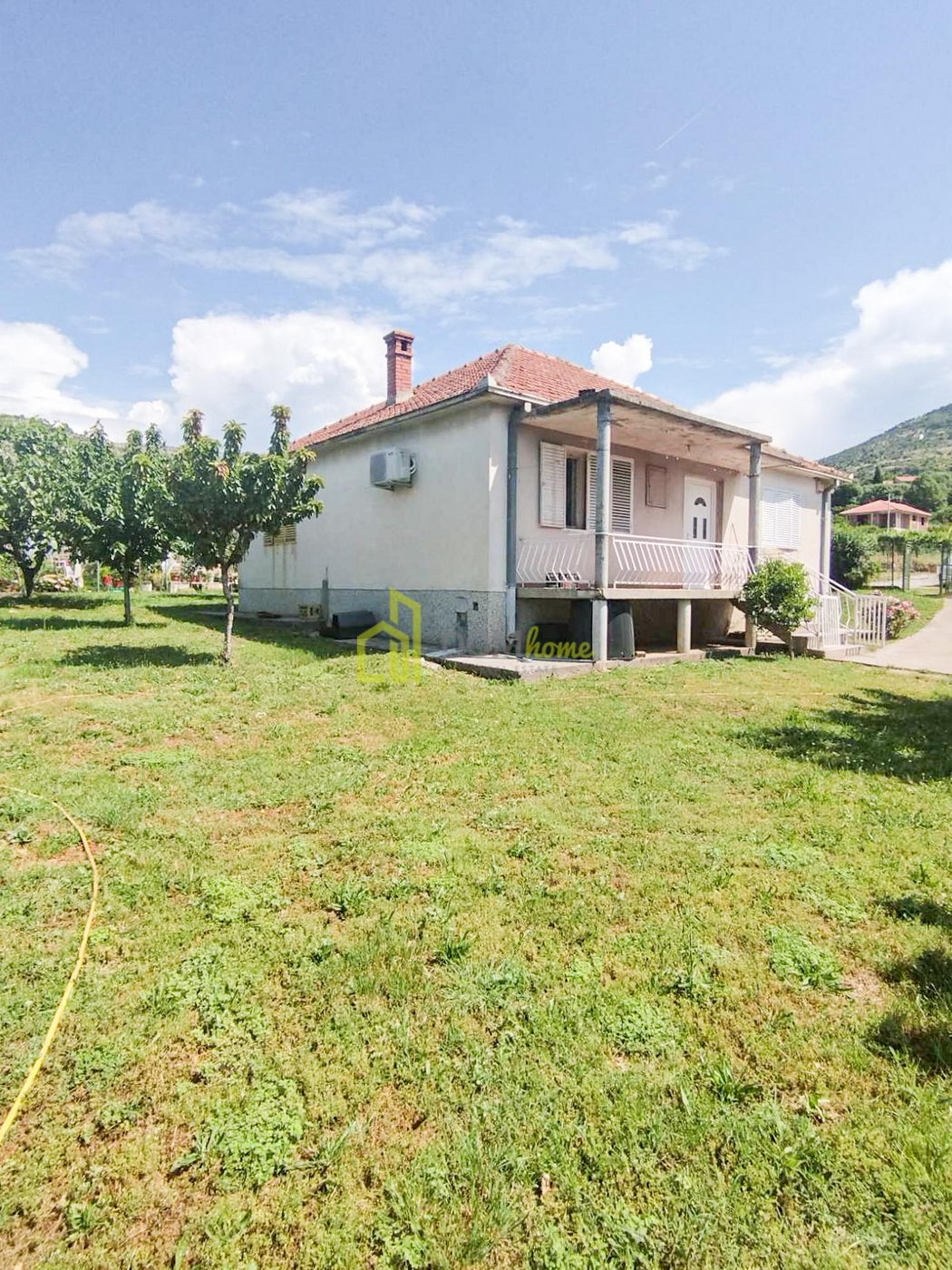 Evin yapısı: giriş holü, oturma odası, mutfak, yemek odası, 3 yatak odası, tuvalet ve 2 teras.